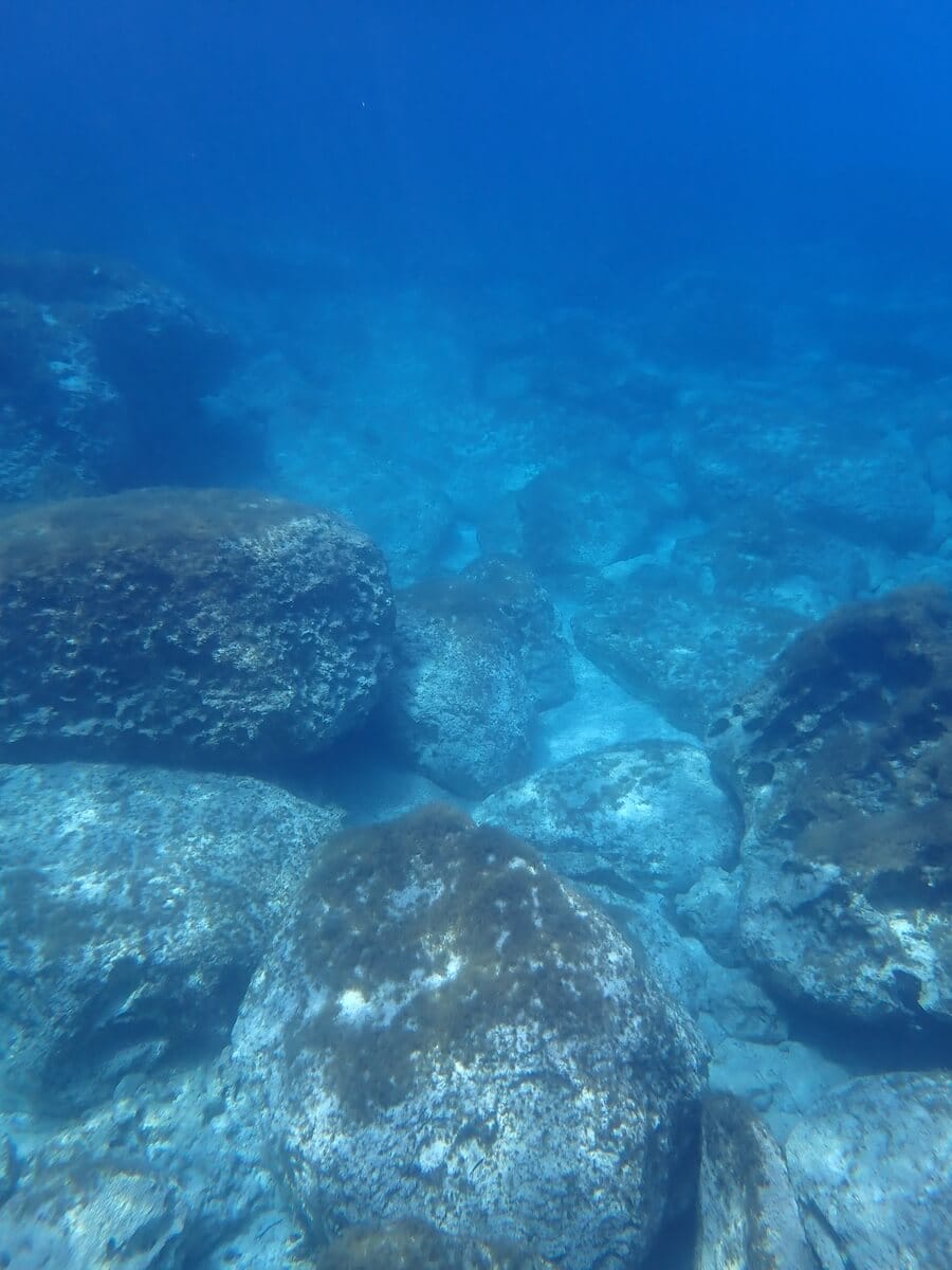 As soon as you enter the water, you’ll find yourself relatively deep areas (↕6-18 feet/2-6 meters), with rugged rocky reliefs. Huge blocks, plateaus and scree form varied underwater landscapes, before giving way to sandy bottoms (↕12-24 feet/4-8 meters).