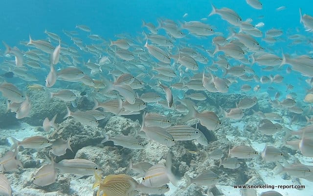 Snorkeling spots are part of a wild environment and their aspect can be significantly altered by weather, seasons, sea conditions, human impact and climate events (storms, hurricanes, seawater-warming episodes…). The consequences can be an alteration of the seabed (coral bleaching, coral destruction, and invasive seagrass), a poor underwater visibility, or a decrease of the sea life present in the area. Snorkeling Report makes every effort to ensure that all the information displayed on this website is accurate and up-to-date, but no guarantee is given that the underwater visibility and seabed aspect will be exactly as described on this page the day you will snorkel the spot. If you recently snorkeled this area and noticed some changes compared to the information contained on this page, please contact us.