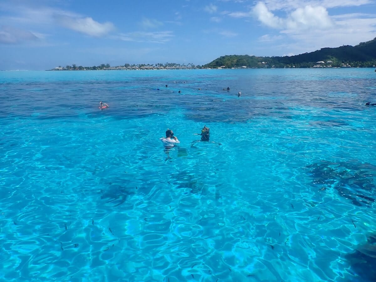 If you are staying at the Sofitel Bora Bora Private Island, which is located on Motu Pitiuu Uta, you can swim to the spot which is only about 330 yards from the hotel’s main jetty.