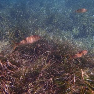 2/ the sandy and seagrass areas facing the beach. Here, you can reach a significant depth pretty fast and you can discover beautiful meadows of posidonia oceanica and cymodocea nodosa. On these deep seagrass beds, you might occasionally come across small stingrays, gurnards or even small octopus. Brégançon is also a well known spot for hosting many large noble pen shell, a critically endangered Mediterranean shellfish. It can be found vertically inserted in the sandy seabeds, among posidonia meadows. Watch out for boats, which come in great number to anchor in the bay.
