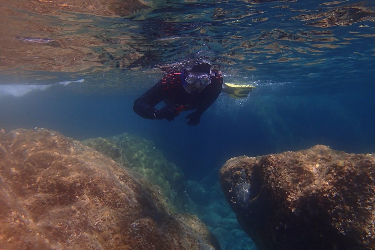 Cala di Reta is a dangerous place for snorkeling when water is not perfectly calm, notably because it is very exposed to swells when the wind blows from the West. Ask for information on site and do not enter the water if there is wind or waves.