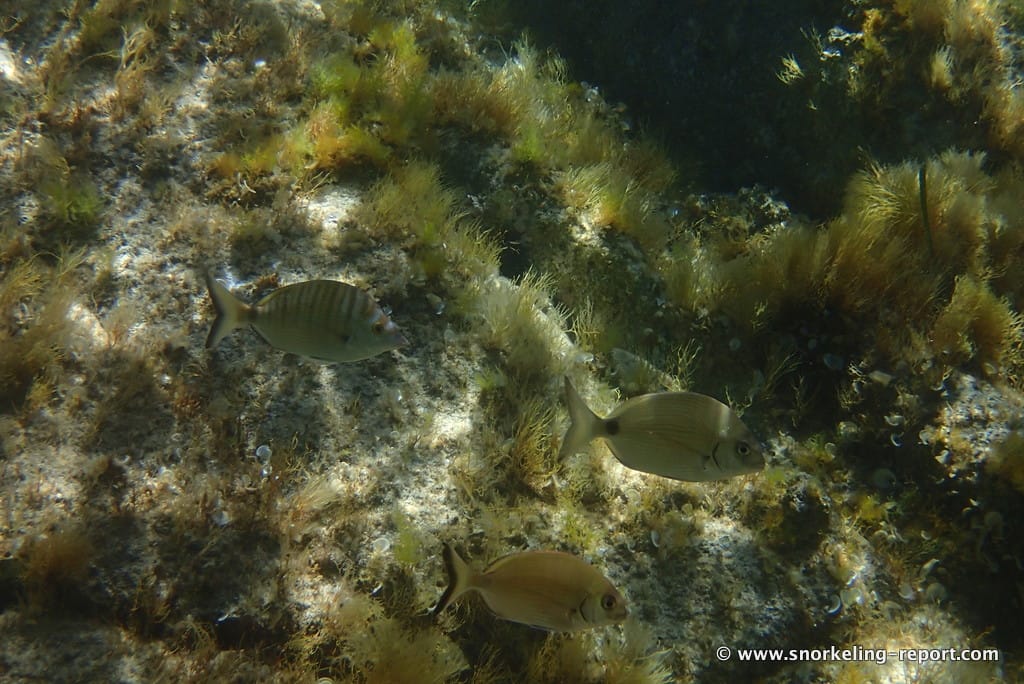 This place is ideal to try to spot a school of salema porgy with their horizontal grey and yellow stripes, or gilt-head bream, a fish that is uncommon outside of protected areas. Water is crystal-clear most of the time on this spot, and it is particularly calm, but jellyfish can come here at certain times of the year.