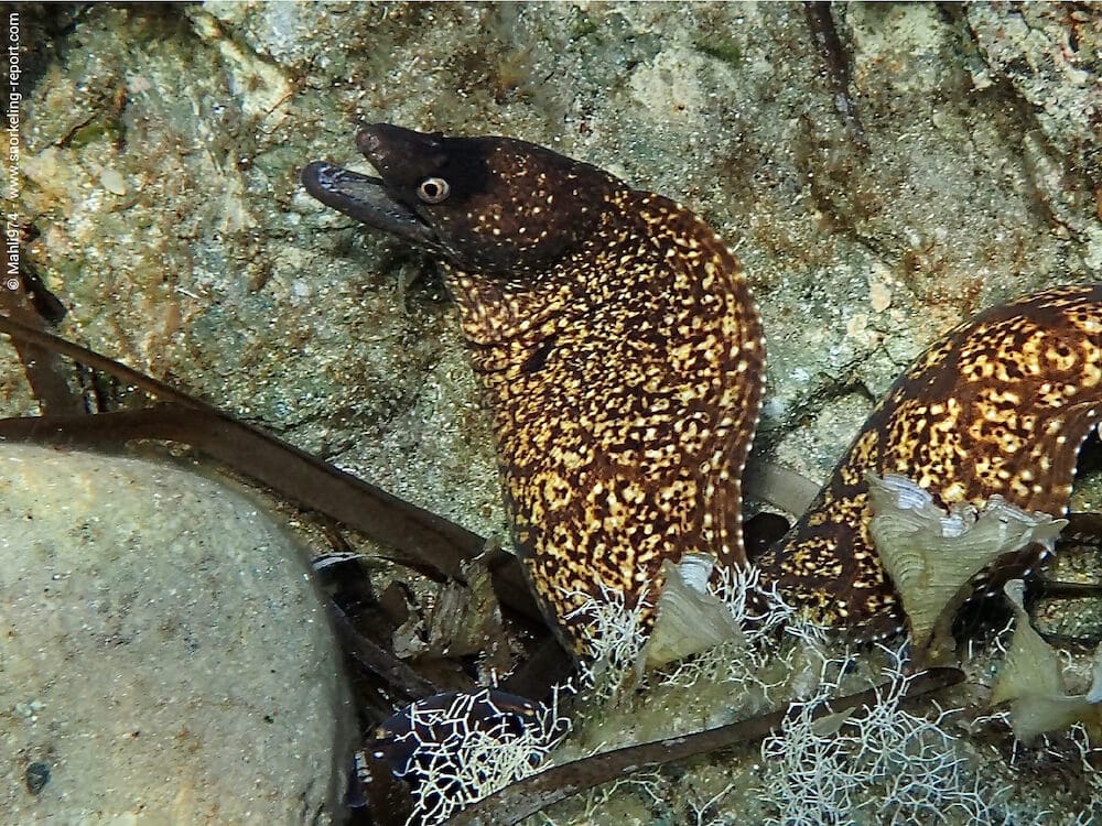 To find rarer species, explore the rocky ridges and cracks to have a chance to spot a scorpionfish, a moray eel, shrimps, an octopus, or a starfish.