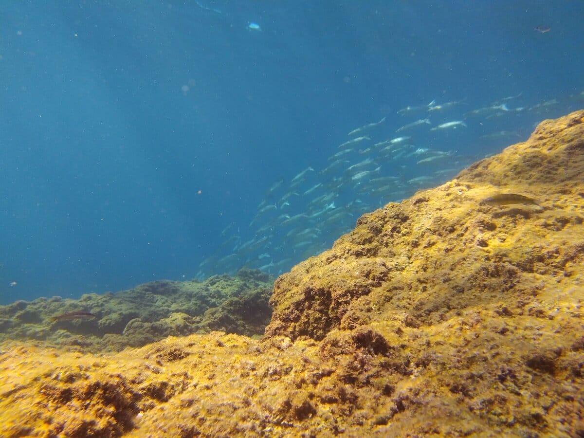 In this shallow rocky bay, sheltered from the northern wind, you’ll spot many examples of Mediterranean fauna and flora. On the flats and sandy bottoms, you can easily spot wrasses, mullets, salema and seabreams.