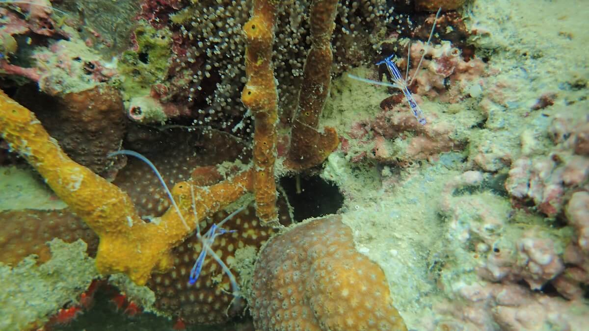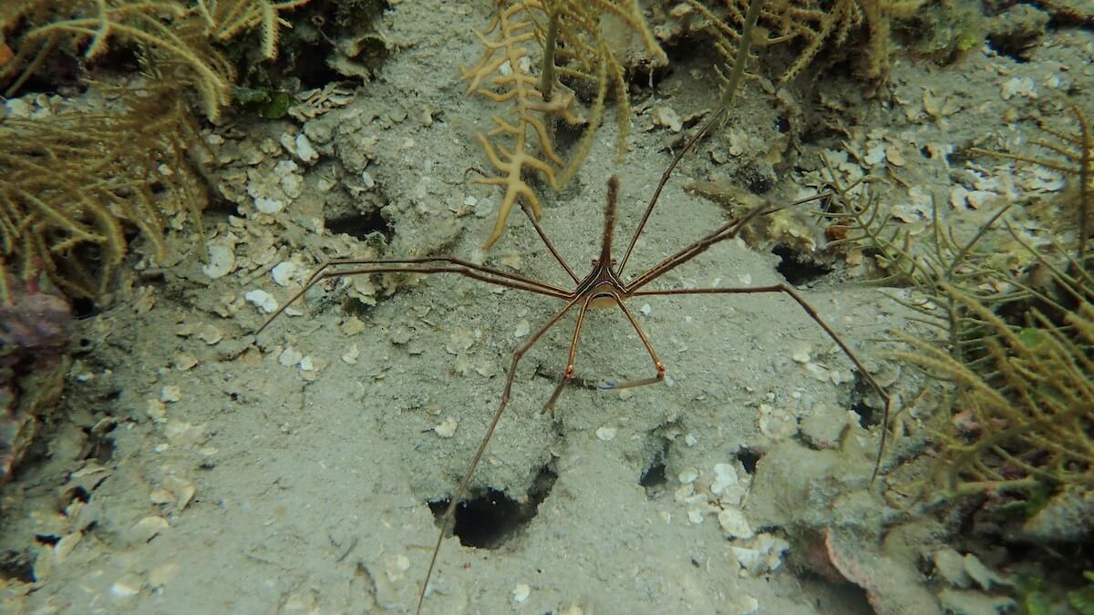Coral shelters hundreds of brittle stars, very common throughout the area. Small schools of sergeant major, wrasse and grunt are easy to spot around the reef. If you are lucky, you may encounter a gray angelfish, a French angelfish or a queen angelfish around.