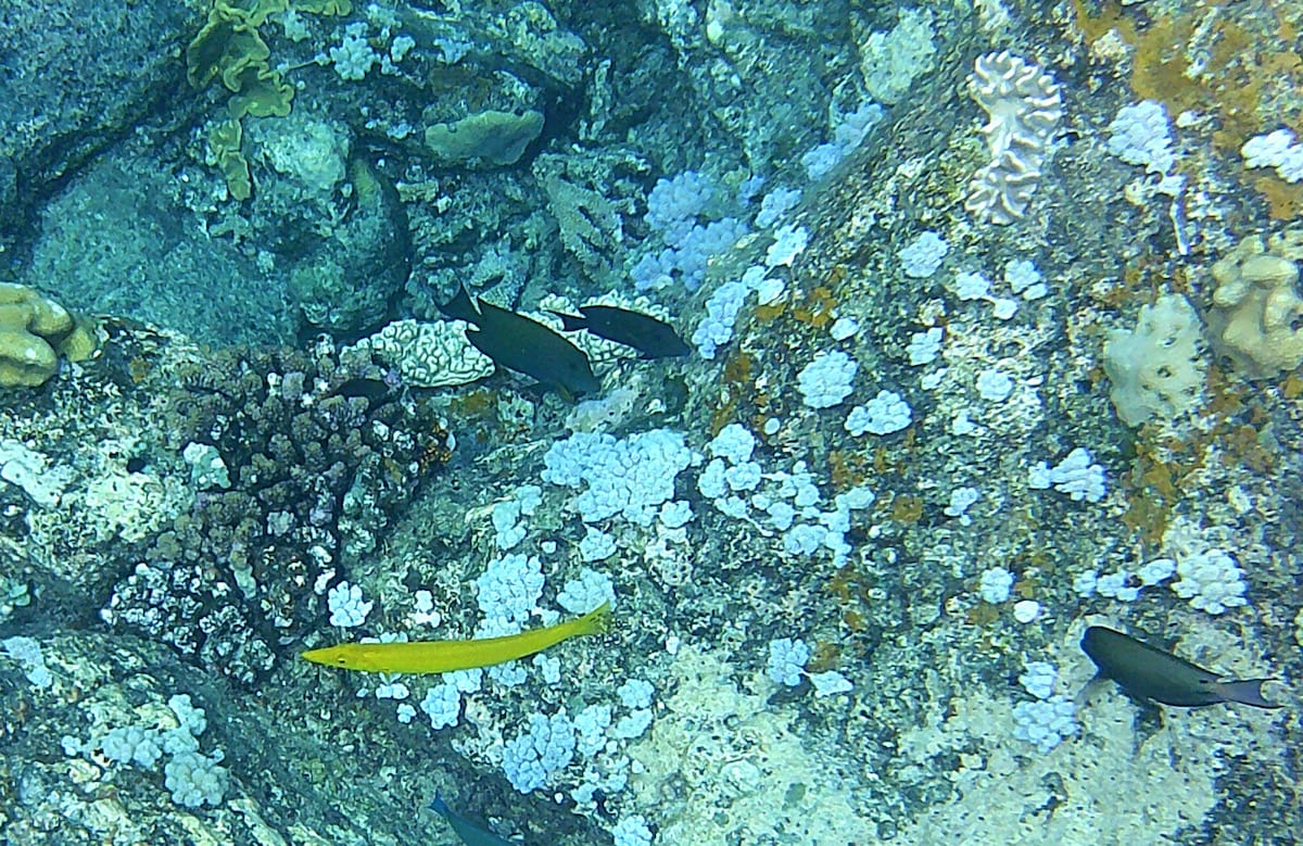 The remoteness of Coin de Mire means that the corals are in better condition there than on the main island, but some areas are quite degraded due to the high frequentation of the spot (visited by several boats every day).
