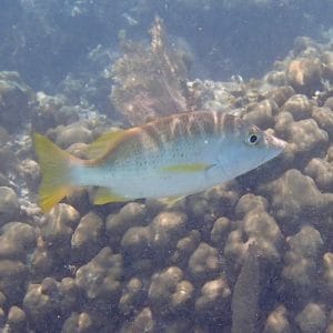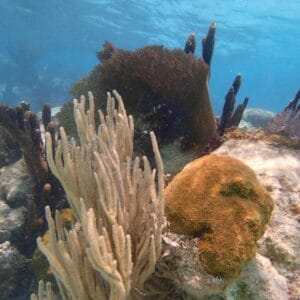 Large schools of grunt shelter in the shade of the coral heads, as well as groups of Bermuda chub. Many common species of Caribbean reefs can be seen here, such as sergeant majors, wrasse, damselfish… If you’re lucky you will also spot some large parrotfish.