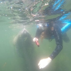 Encountering manatees underwater is an experience you will always remember, but keep in mind that these gentle and giant animals are in the warm springs for survival. In winter, outside the springs, manatees experience cold stress and hypothermia. To allow the manatees to enjoy a peaceful rest in the springs, do not harass or disturb them. It is prohibited to touch, chase, or try to feed them.