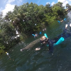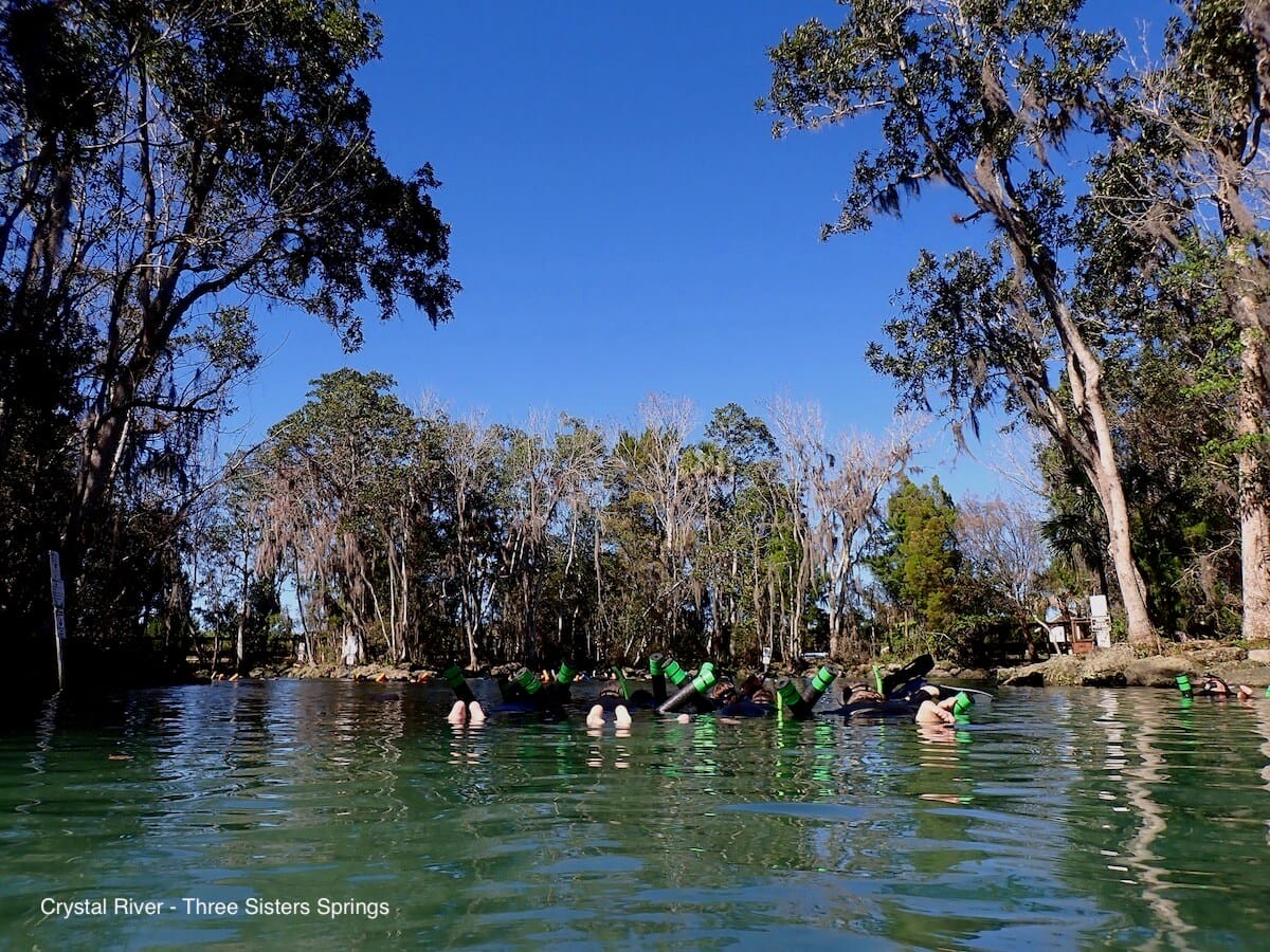 Three Sisters Springs is the most popular location for snorkeling with manatees in Crystal River. 200 to 300 manatees can be present at the same time in the springs during the coldest days. In winter, only the central part of the spring can be snorkeled, and two sanctuaries are delimited on the western and eastern sides of the spring (see map). The depth varies between 5 and 12ft (1.5 to 4m).