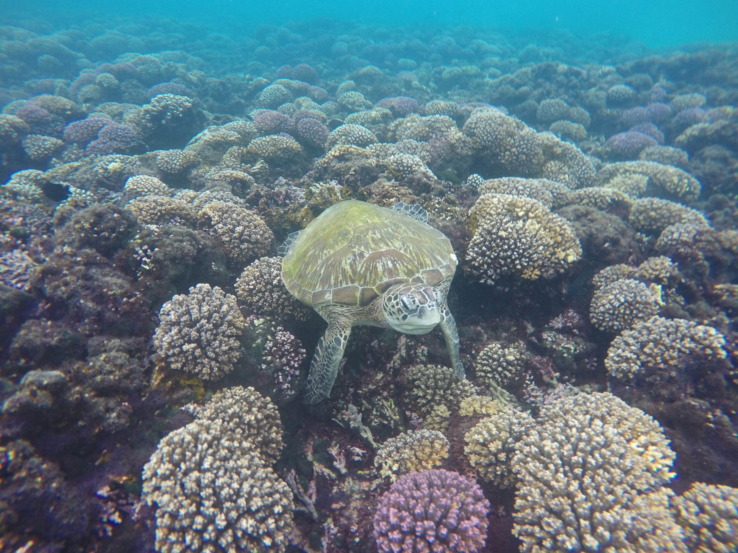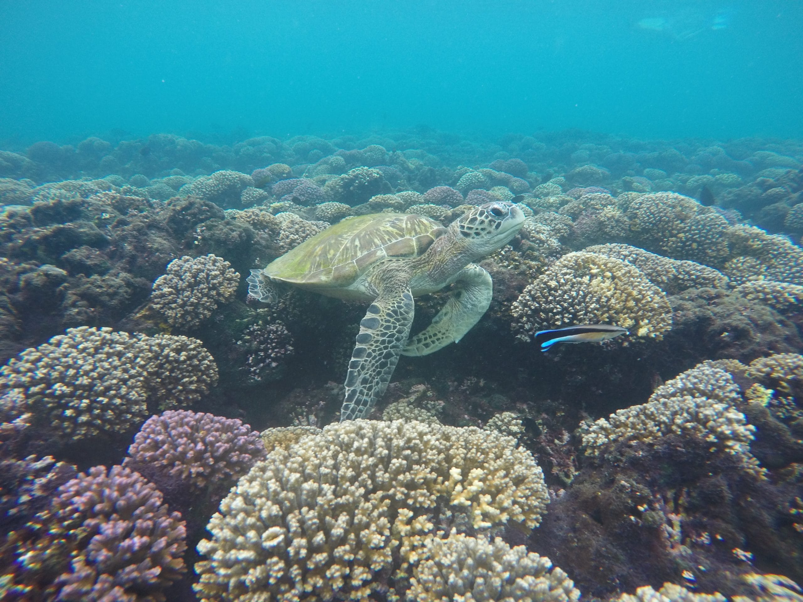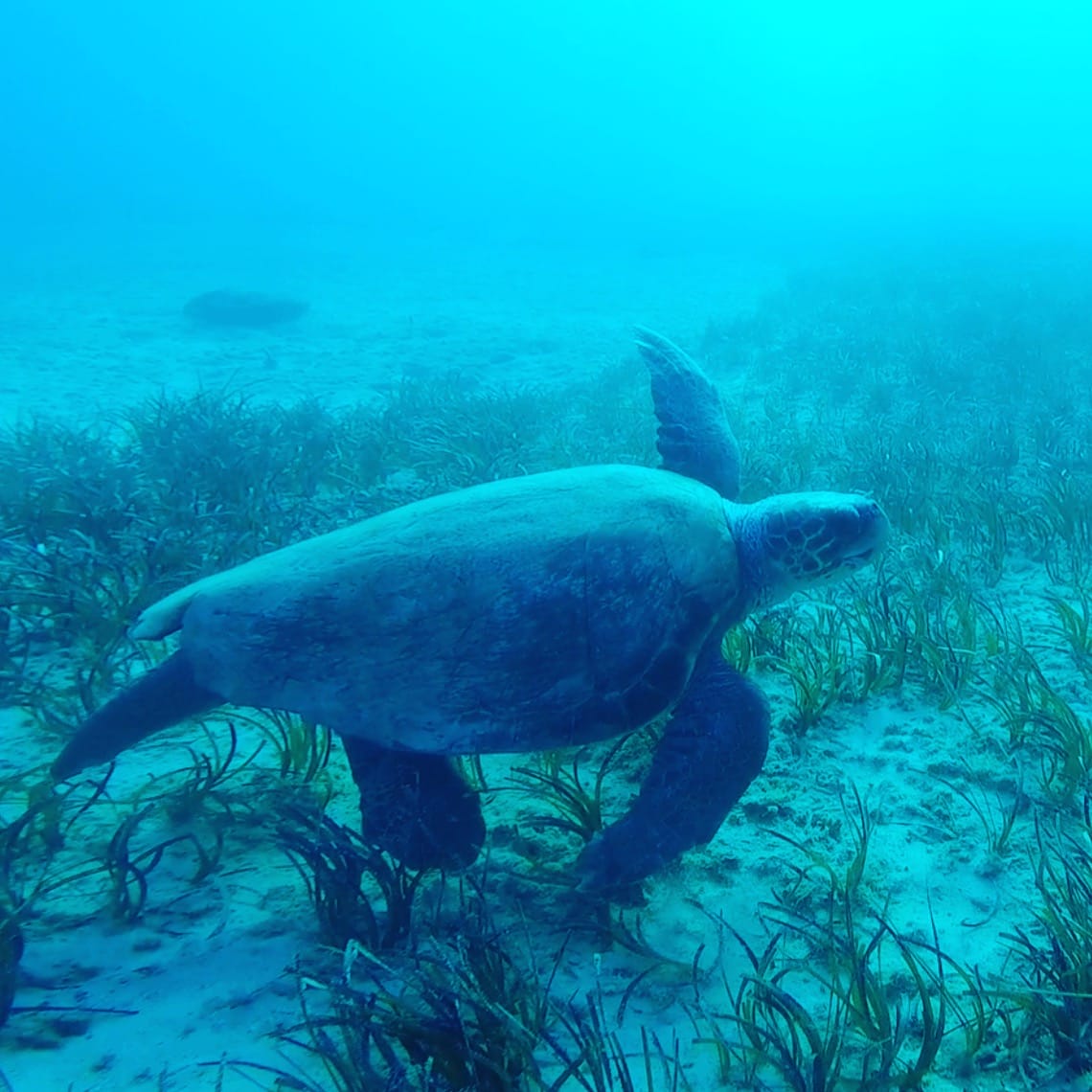 1. The seagrass beds extending in a small bay located on the southwestern side of the main island (zone 1 on the map). It is the perfect area to encounter sea turtles, mostly green sea turtles, which come to feed and rest on the seagrass beds.