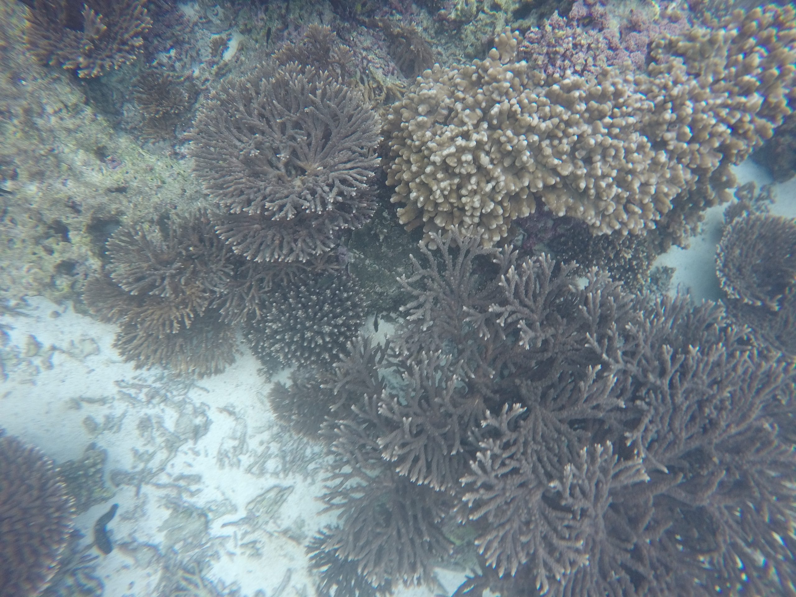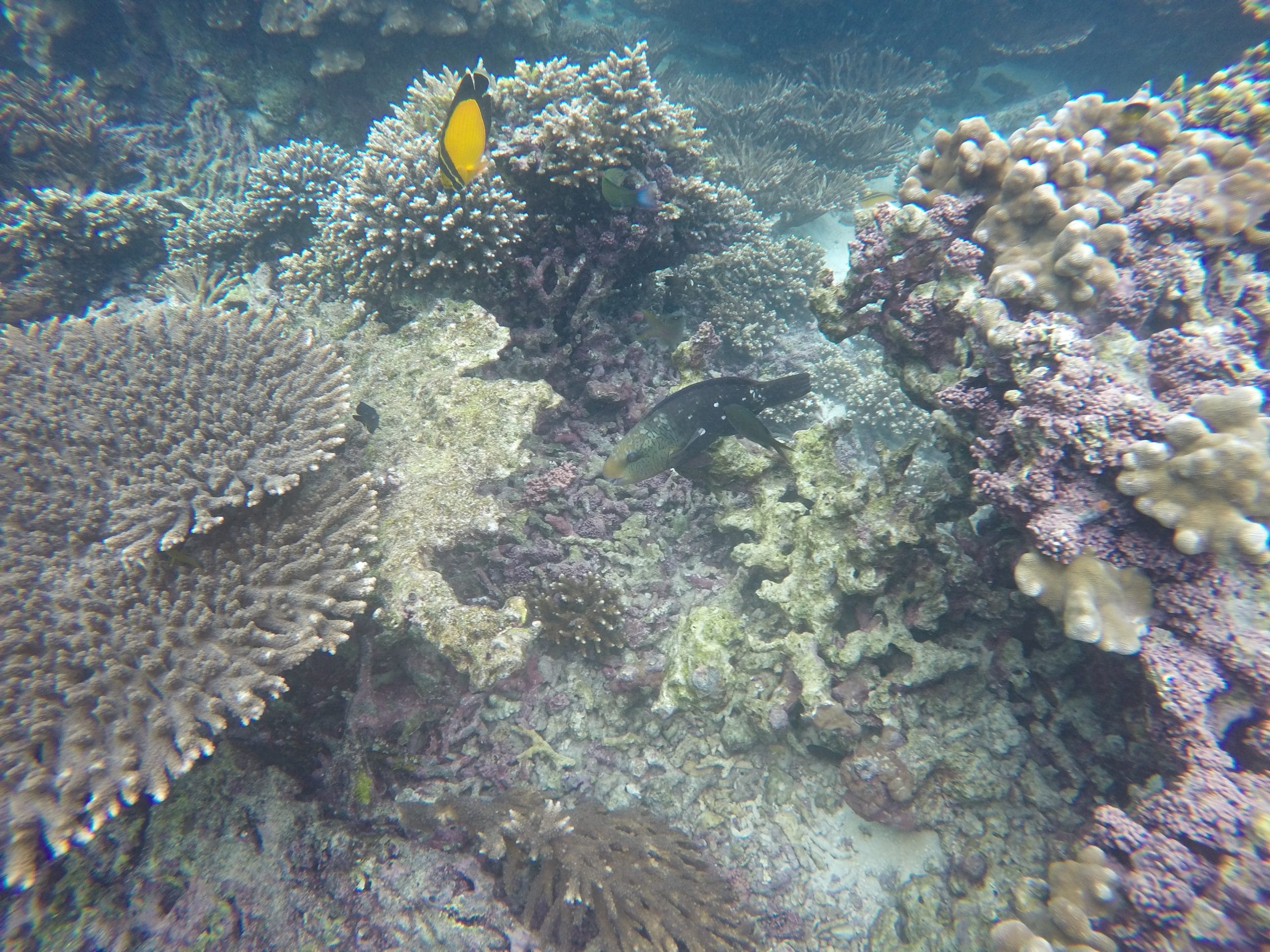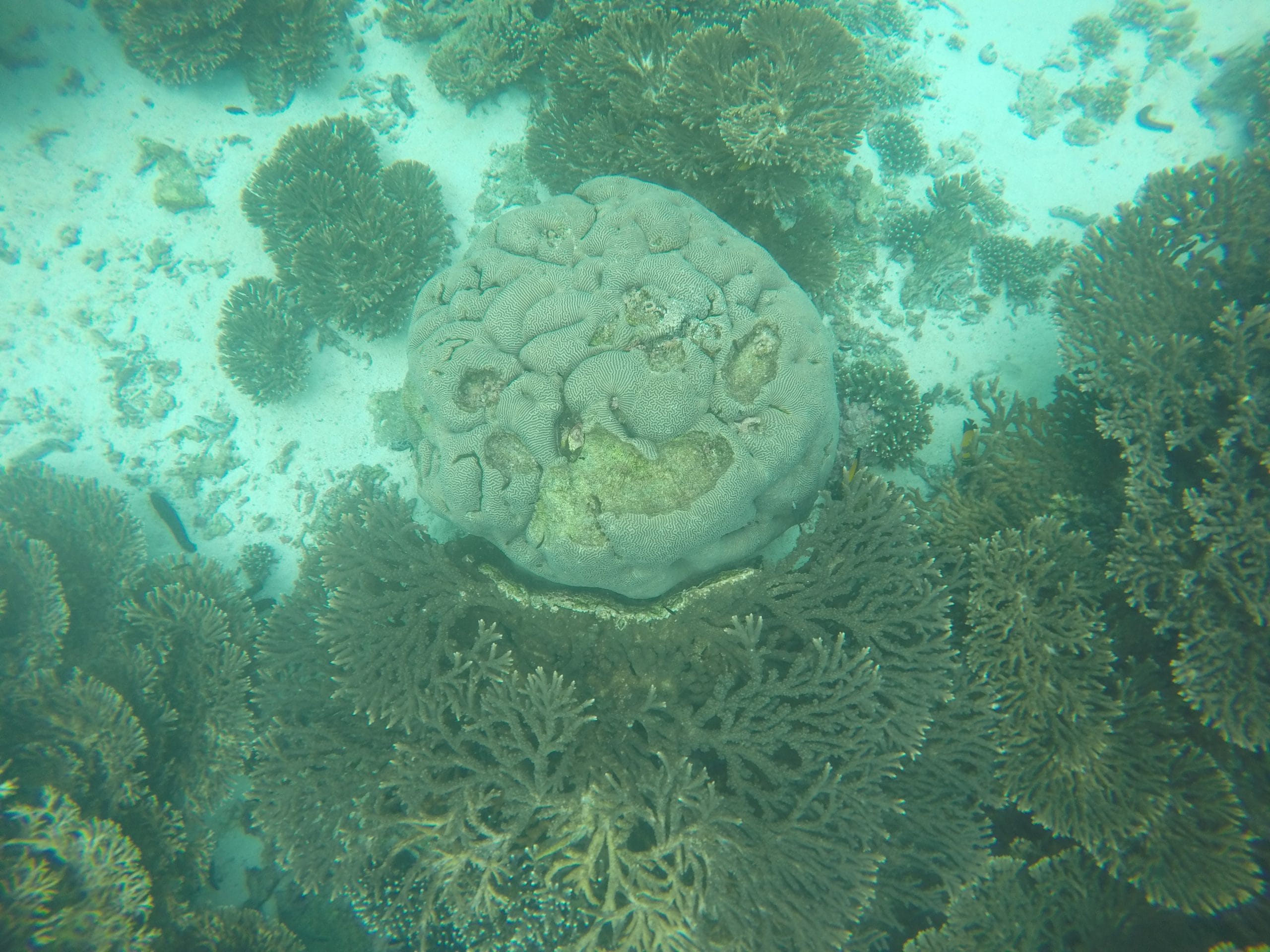 2. The shallow bay located on the northeastern side of the main island (zone 2 on the map). Here, you can snorkel a coral reef, mainly made of hard corals. Coral is healthy but not very colorful.