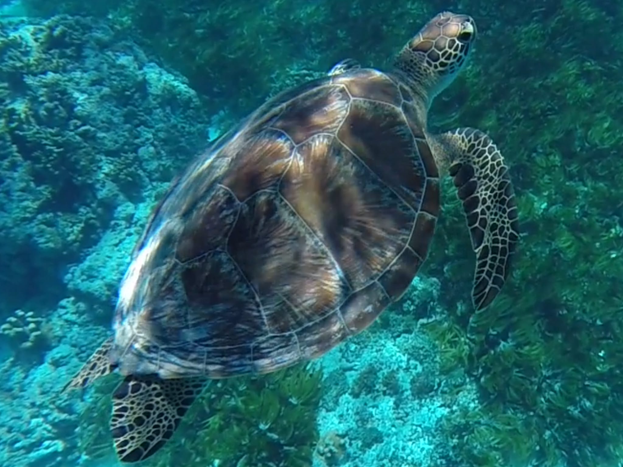 A diversity of reef fish, including damselfish, butterflyfish, surgeonfish, triggerfish and anemonefish, call the House Reef home. You will also most likely encounter hawksbill turtles in the shallows facing the beach.