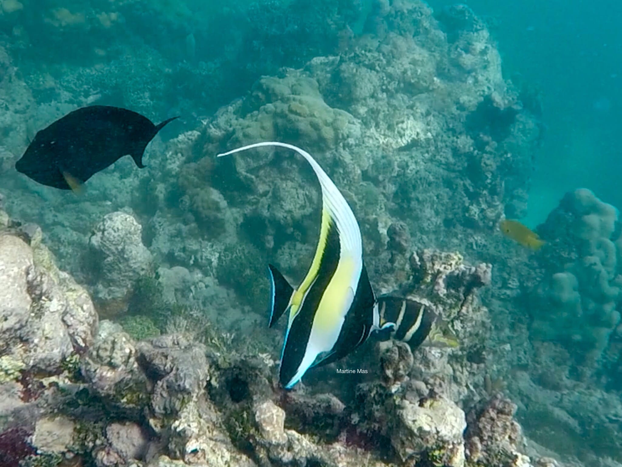 Enter the water from the sandy beach, in front of the area you want to explore. The water entrance at Belle Etoile is tide-dependent: it is only accessible at high tide. The rest of the time the reef flat is too shallow to be snorkeled.