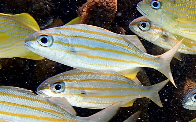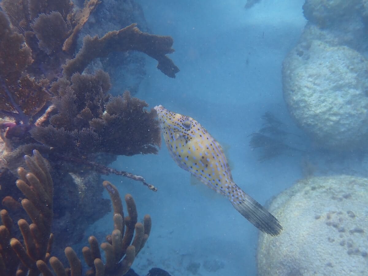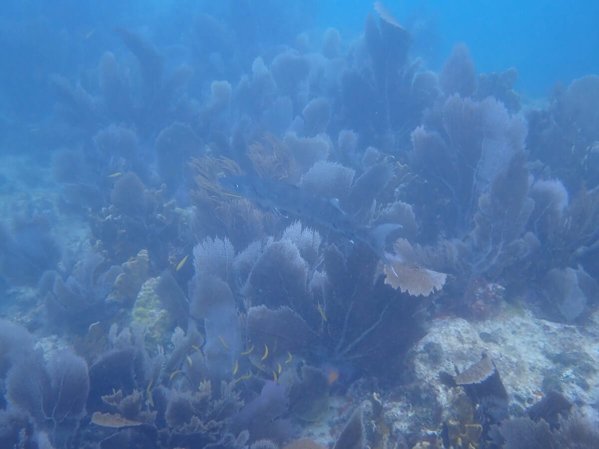 The deeper waters of the reef are great for seeing Great Barracudas, Caribbean reef sharks and Yellowtail Snappers. Unfortunately it is common to encounter jellyfish that are not very dangerous (if you are not allergic to bee stings) though they molest a lot continuously stinging you when snorkelling in the surface.