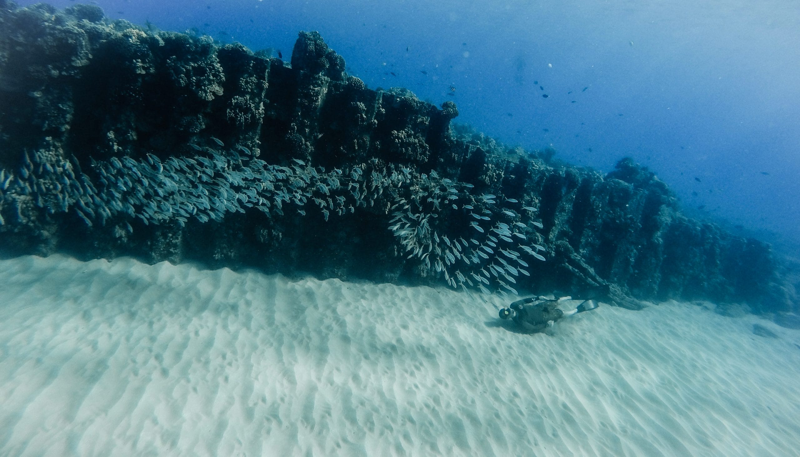 Around the pipe and the other underwater structures which are covered by coral, you will spot a great diversity of reef fish, including butterflyfish, pinktail triggerfish, parrotfish, scrawled filefish, and moray eels. Large schools of snappers shelter along the pipeline.