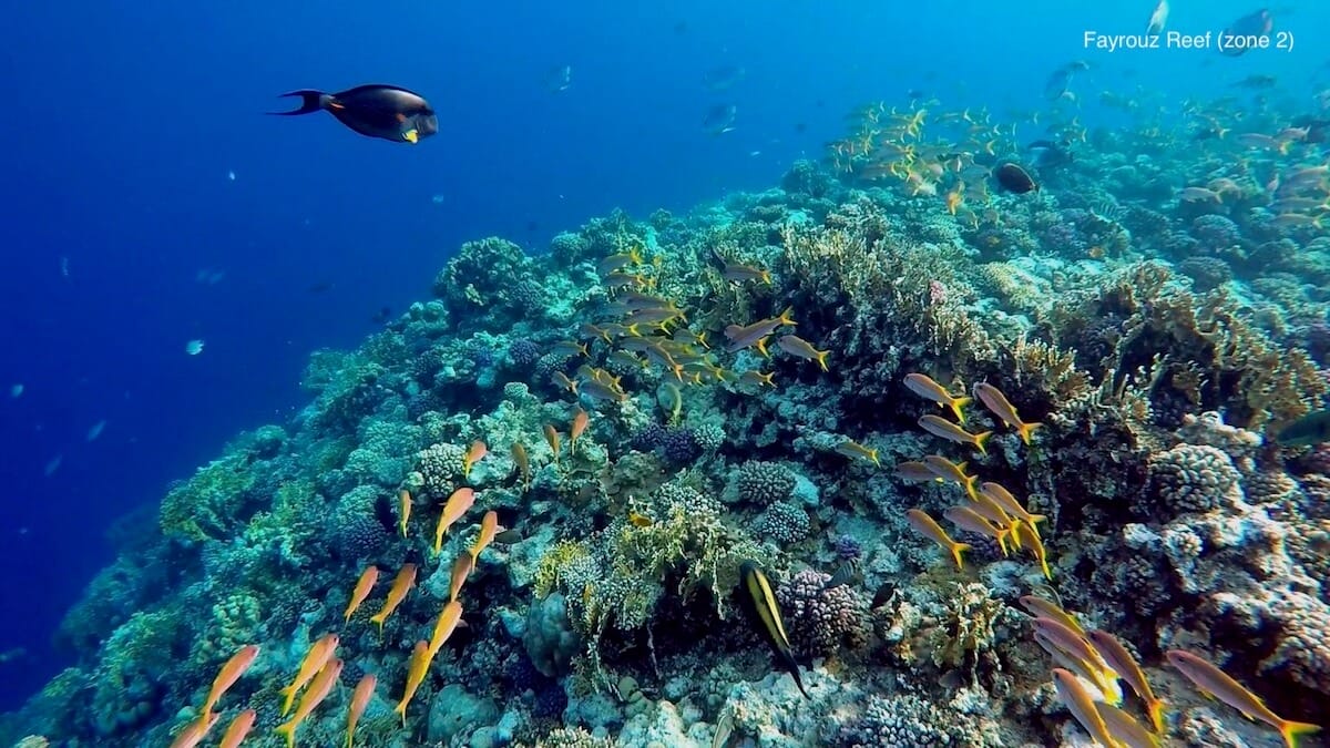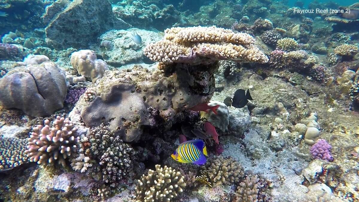 Open to the sea, the Fayrouz reef drop-off is quite exposed and access to it can be closed in strong winds. Forming an almost vertical wall plunging towards the depths (↕30-35 feet), it has a more impressive topography. Due to the slight north-south dominant current, avoid going too far from the pontoon to the right.