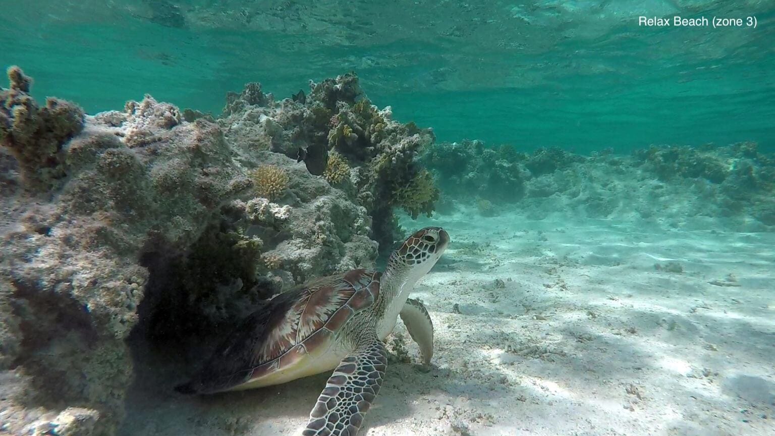 Just 100 yards north of the resort is Relax Beach, which gives access to a third snorkeling area (area 3 on the map). To snorkel in this area, enter the water from the beach and swim through the channel to reach the lagoon.