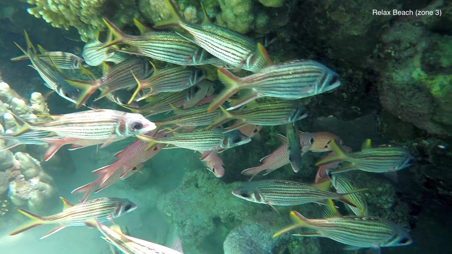 Snorkeling the drop-off, you will discover a vibrant reef, overflowing with multicolored corals. Around it swim hundreds of sea goldies, damsels and fusiliers. Among the many fish that call this area home are the Sohal surgeonfish, the elegant unicornfish, the Red Sea bannerfish, and large lionfish. Sea turtles also make occasional visits to the drop-off. If you are really interested in seeing the turtles, head to Relax Beach lagoon (see below).