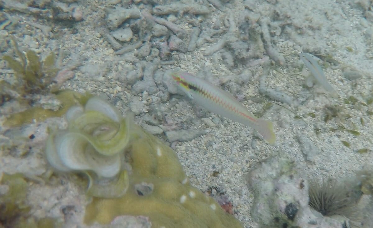 Flic en Flac lagoon is about 300 meters wide, but it is not necessary to get too far from the beach to start spotting interesting things. Only a few dozen meters from the shore, numerous coral clumps can be seen on sandy areas, attracting whitetail dascyllus, Moorish idols and butterflyfish (mostly racoon butterflyfish, vagabond butterflyfish and threadfin butterflyfish).