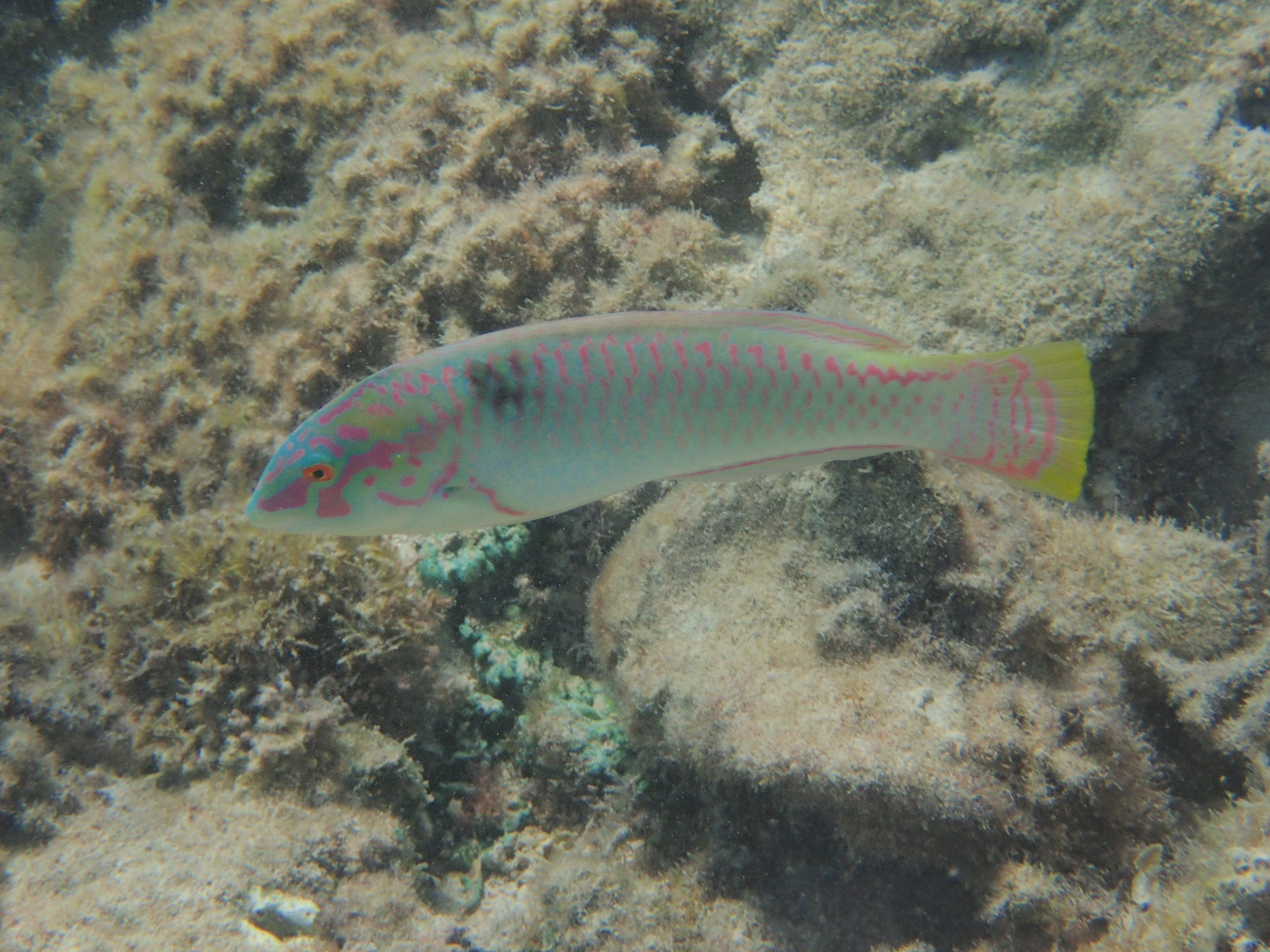 As you get close to the barrier, water depth decreases: do not venture in the shallowest areas, as you could get hurt as well as broke corals. Wrasse, schools of goatfish, small honeycomb groupers and rabbitfish are commonplace inside the lagoon. Watchful eyes can even spot small moray eels or lionfish hidden amongst corals.