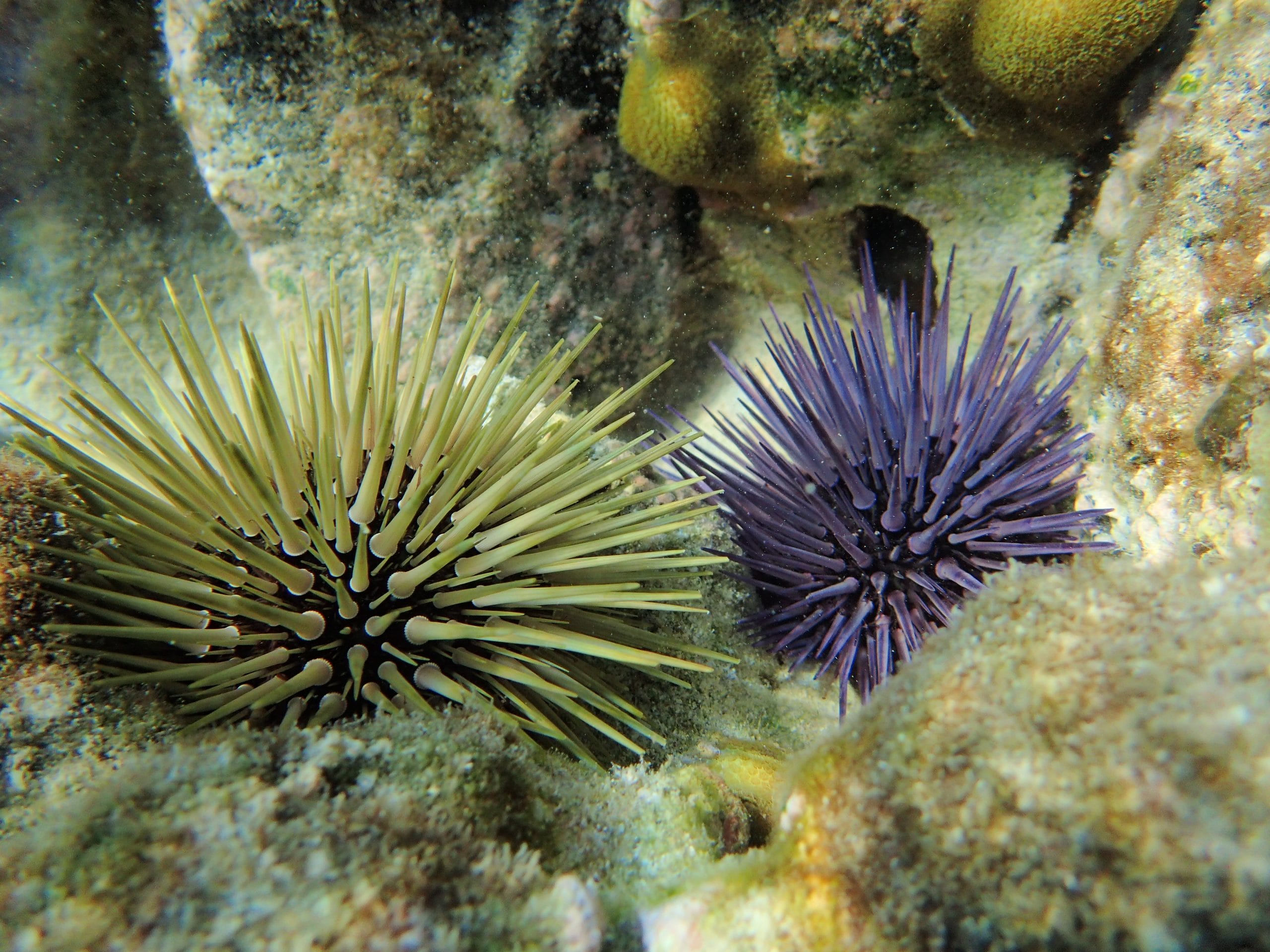 Mind the burrowing sea urchins covering some areas, sometimes close to the shoreline. Since the lagoon is frequented by boats, we advise taking a small diving flag along with you if you want to swim outside the swimming areas.