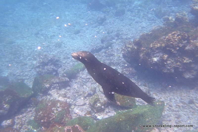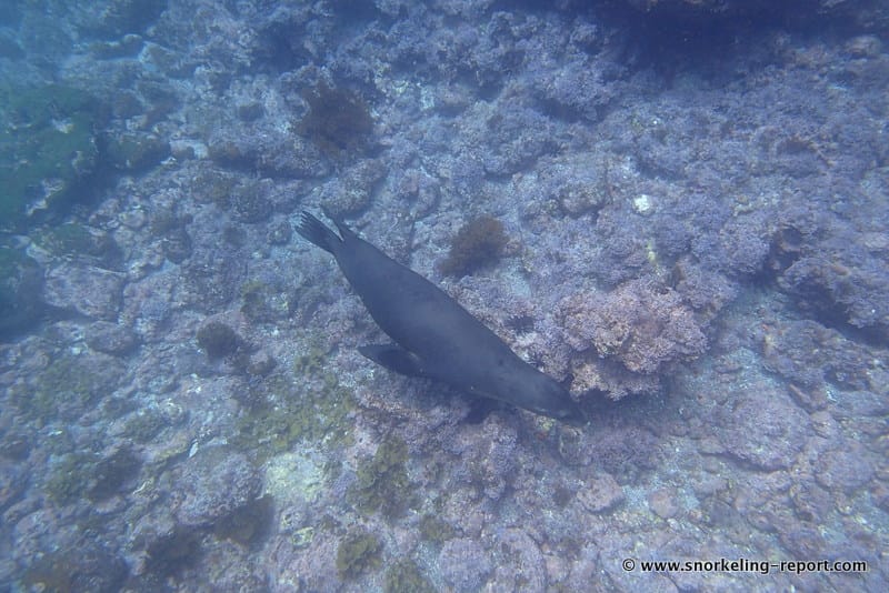 A sea lion paradise! I’m not sure why but the sea lions here were more playful than anywhere else we snorkeled in the Galapagos. Also observed a school of yellow-fin surgeonfish, coral hawkfish, giant hawkfish, and a pacific green sea turtle. Lots of Mexican anemone compared to other snorkeling spots we visited in the archipelago