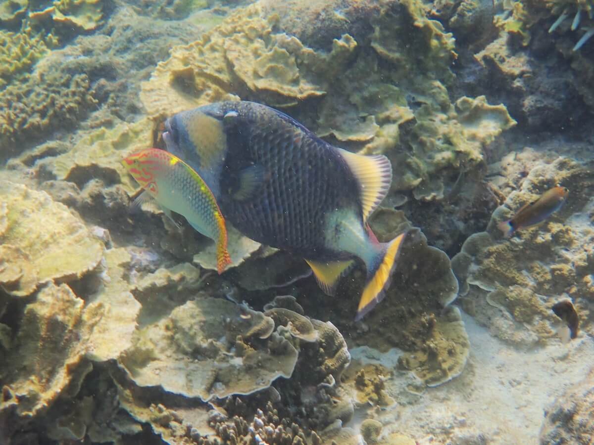 A few surgeonfish, as well as large titan triggerfish, are also often seen at this spot.