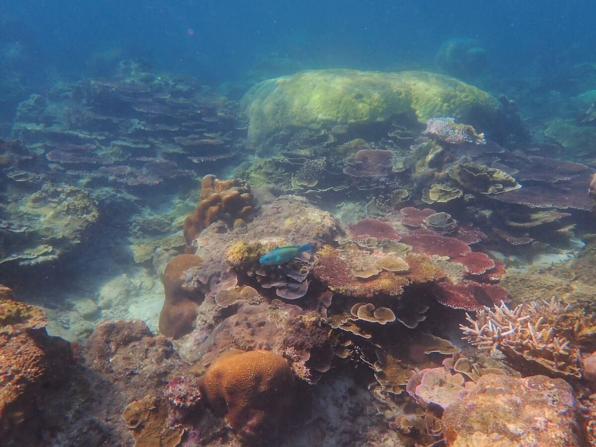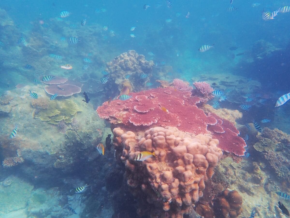 Unlike other snorkeling spots around Pulau Tulai, such as the Blue Lagoon, the corals here remain in good condition and very colorful, even if some algae have lightly colonized certain parts of the reef.