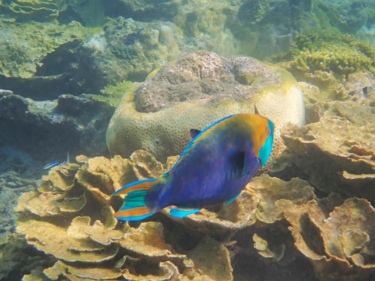 The reef is visited by a variety of parrotfish, butterflyfish and wrasse.
