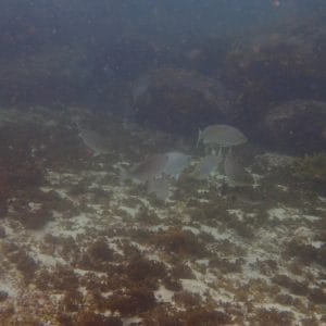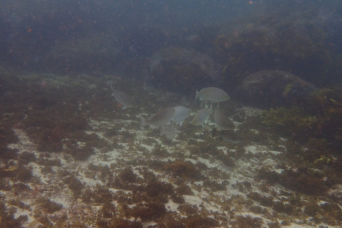 Near the large immersed boulders, many mados (which we recognize by their striped body) and Eastern pomfreds can be found. The blue groper, emblematic fish of the New South Wales coastal areas, can also be seen in the bay.
