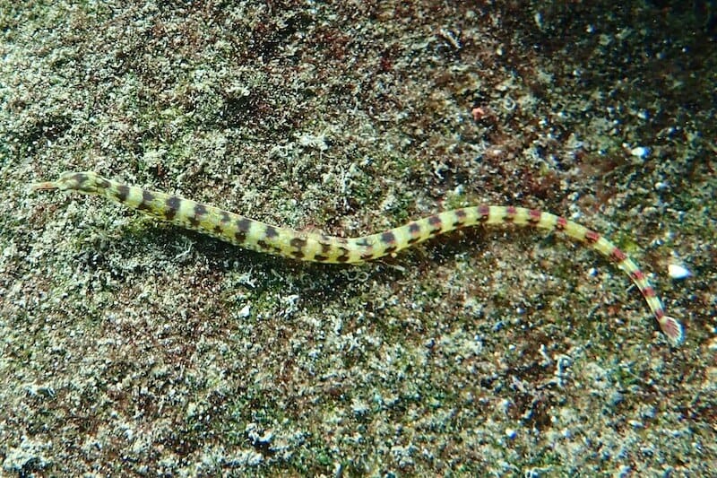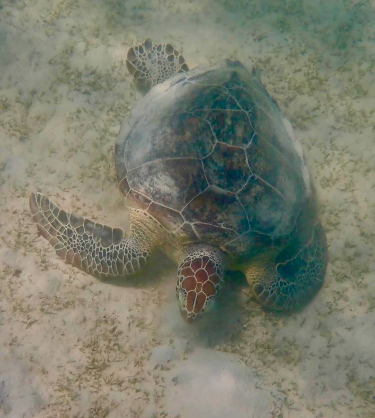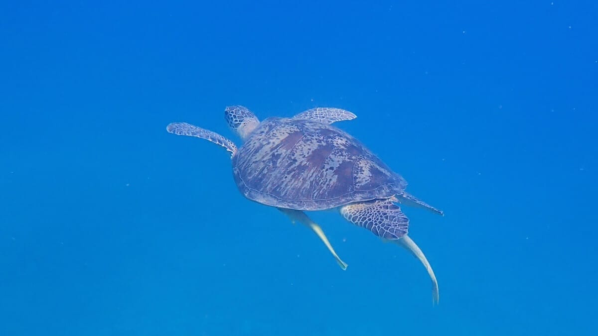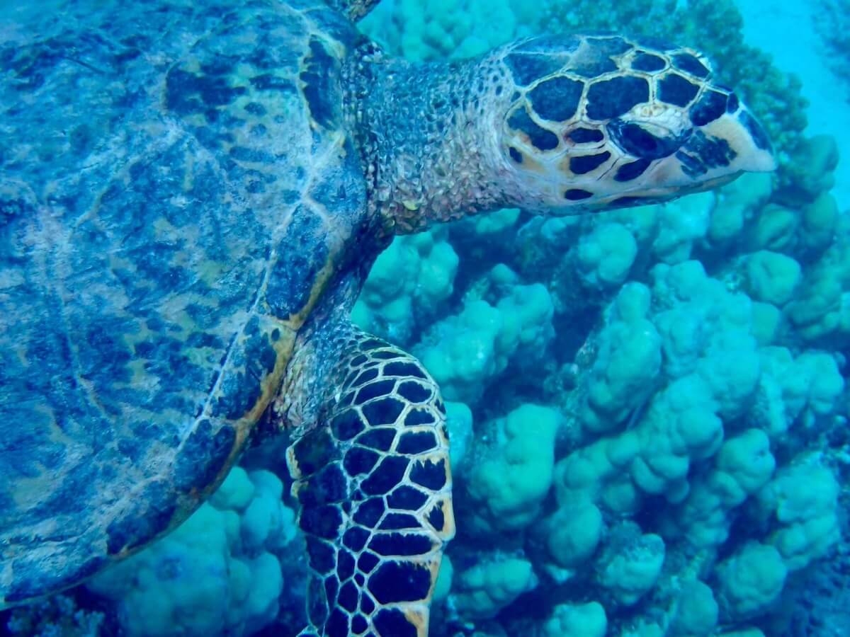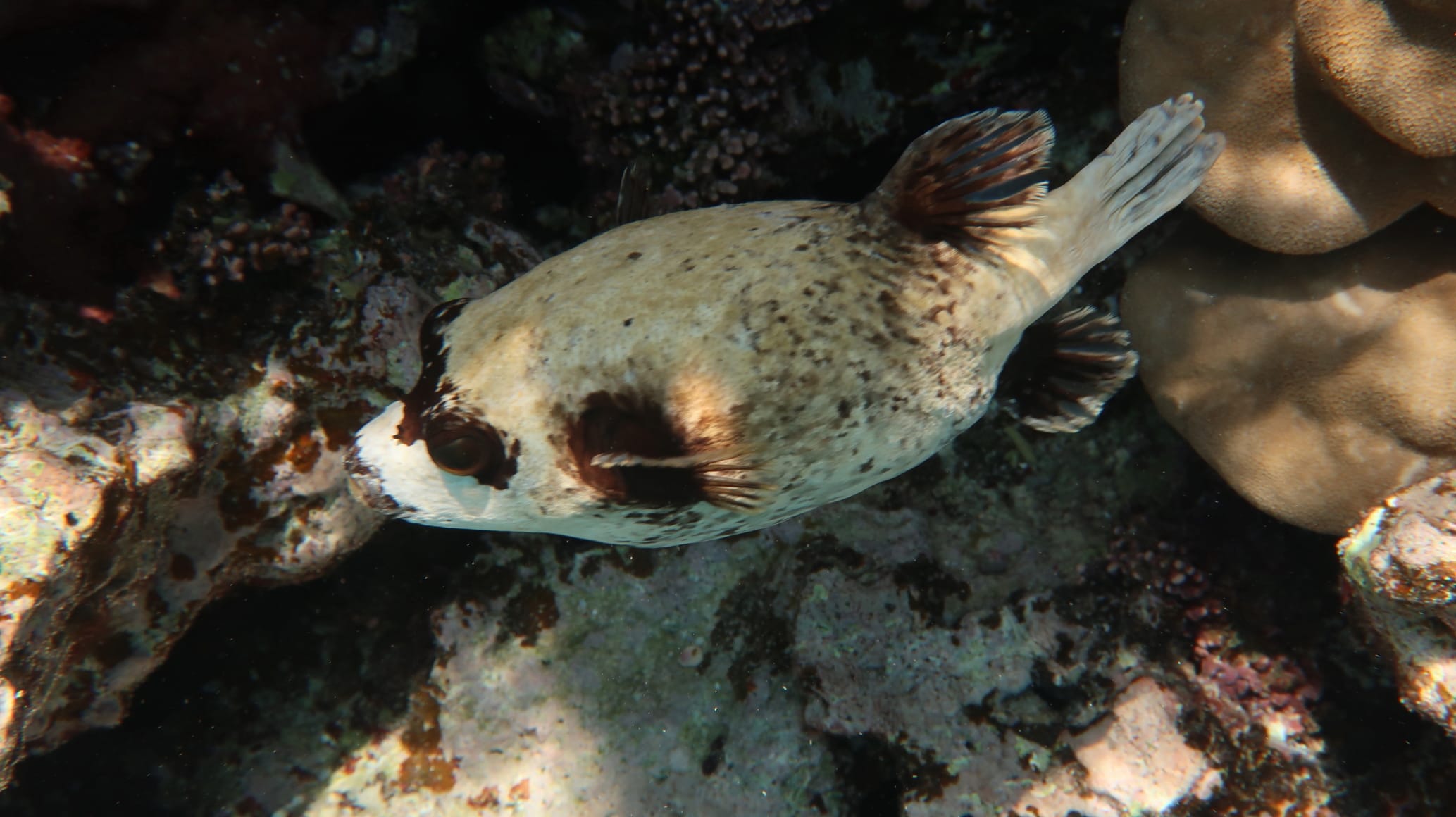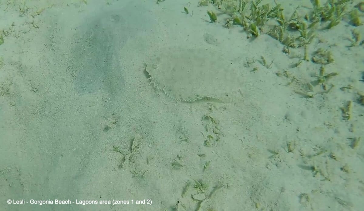 In the lagoons (zones 1 and 2) you can often see a green sea turtle feeding on seagrass, Halavi rays (or guitarfish), bluespotted ribbontail ray, cowtail stingray and deep flounder on the sand. Indian sailfin tang, network pipefish, lionfish are near corals and white-spotted puffer, masked puffer, and bluespotted cornetfish can be found too.