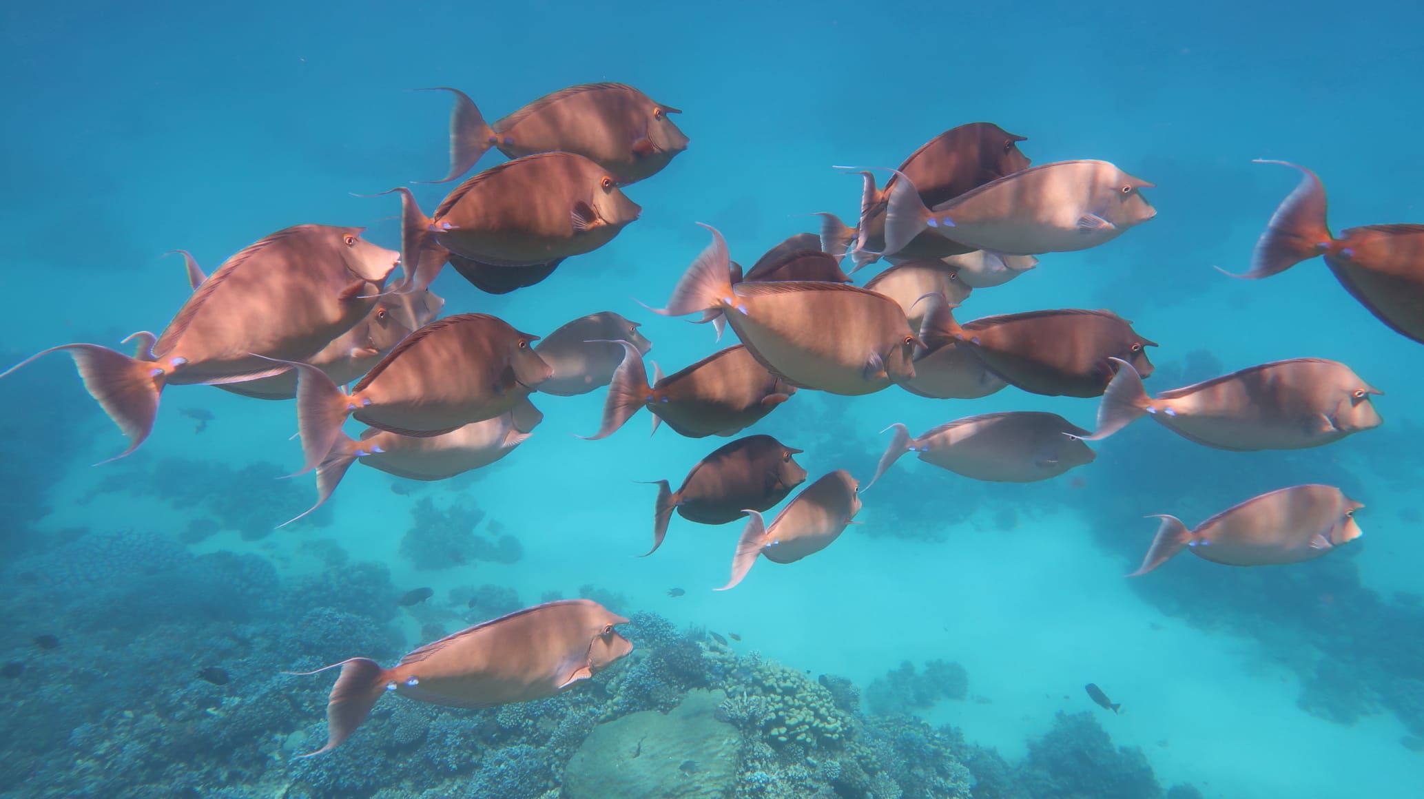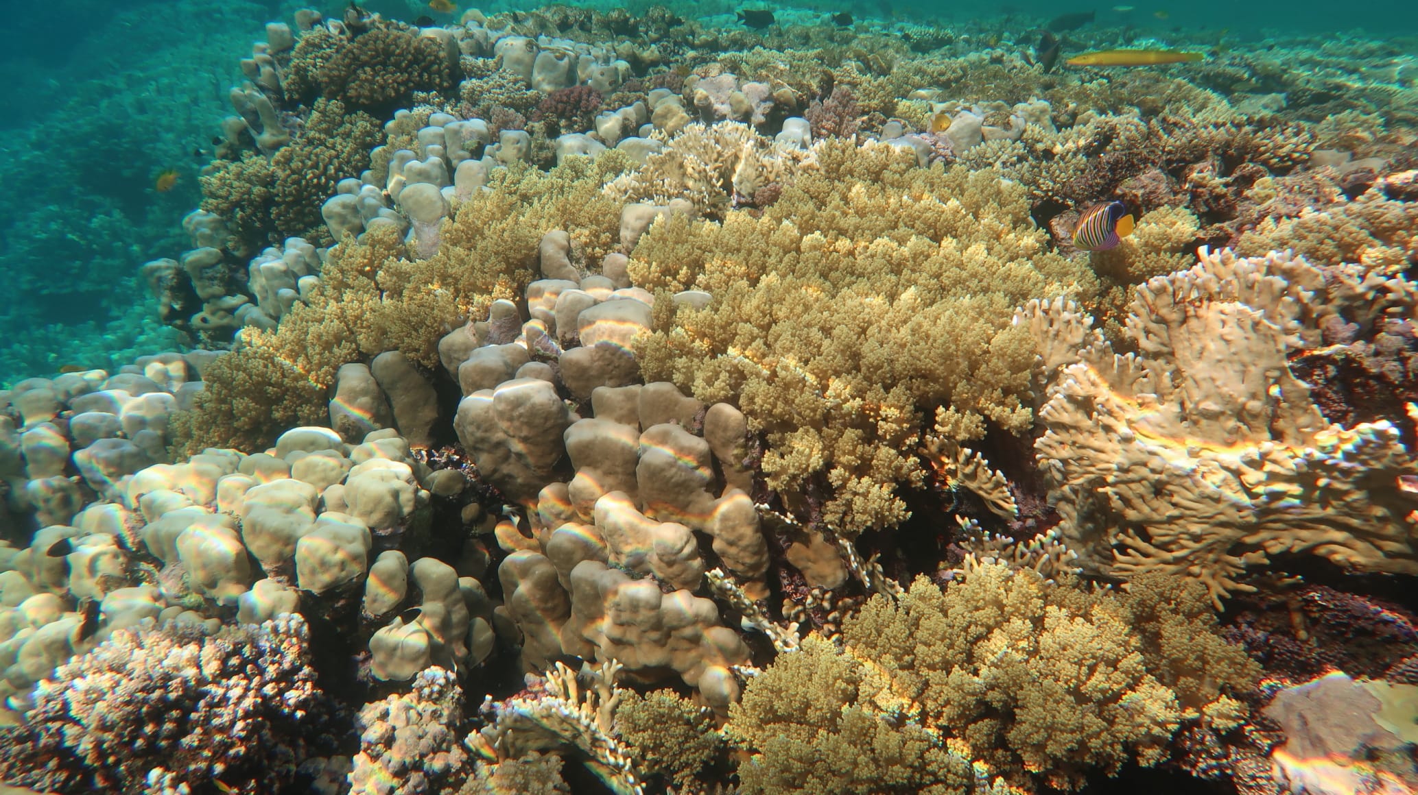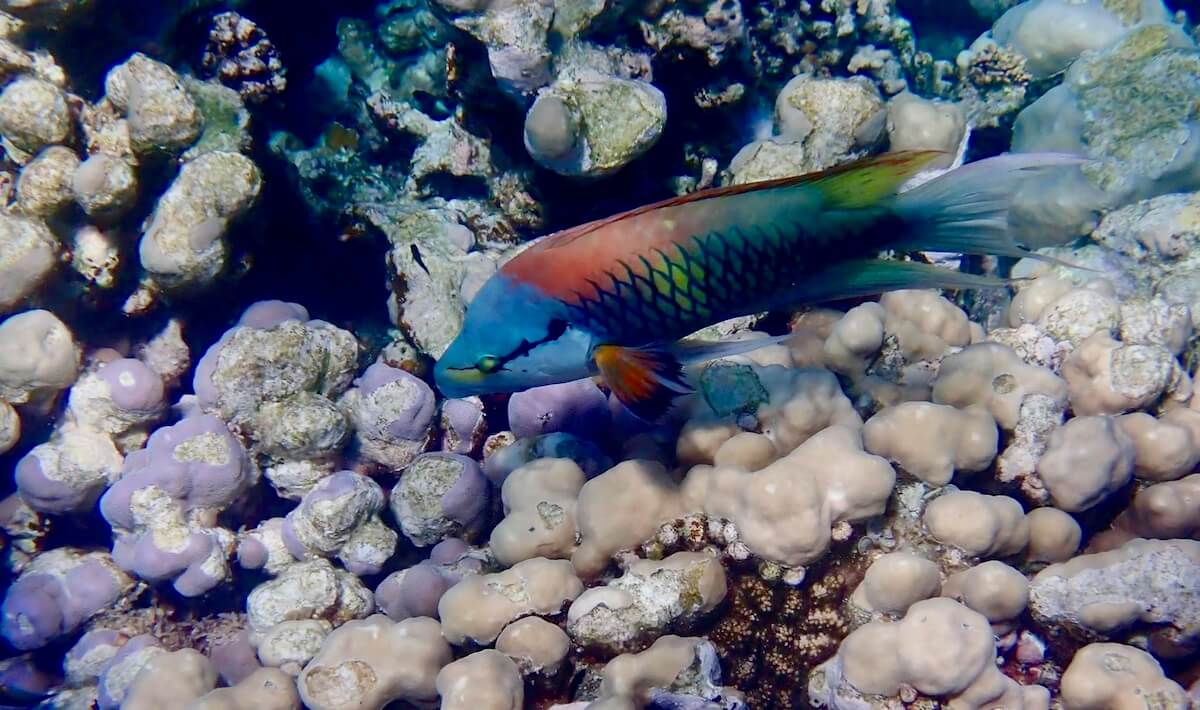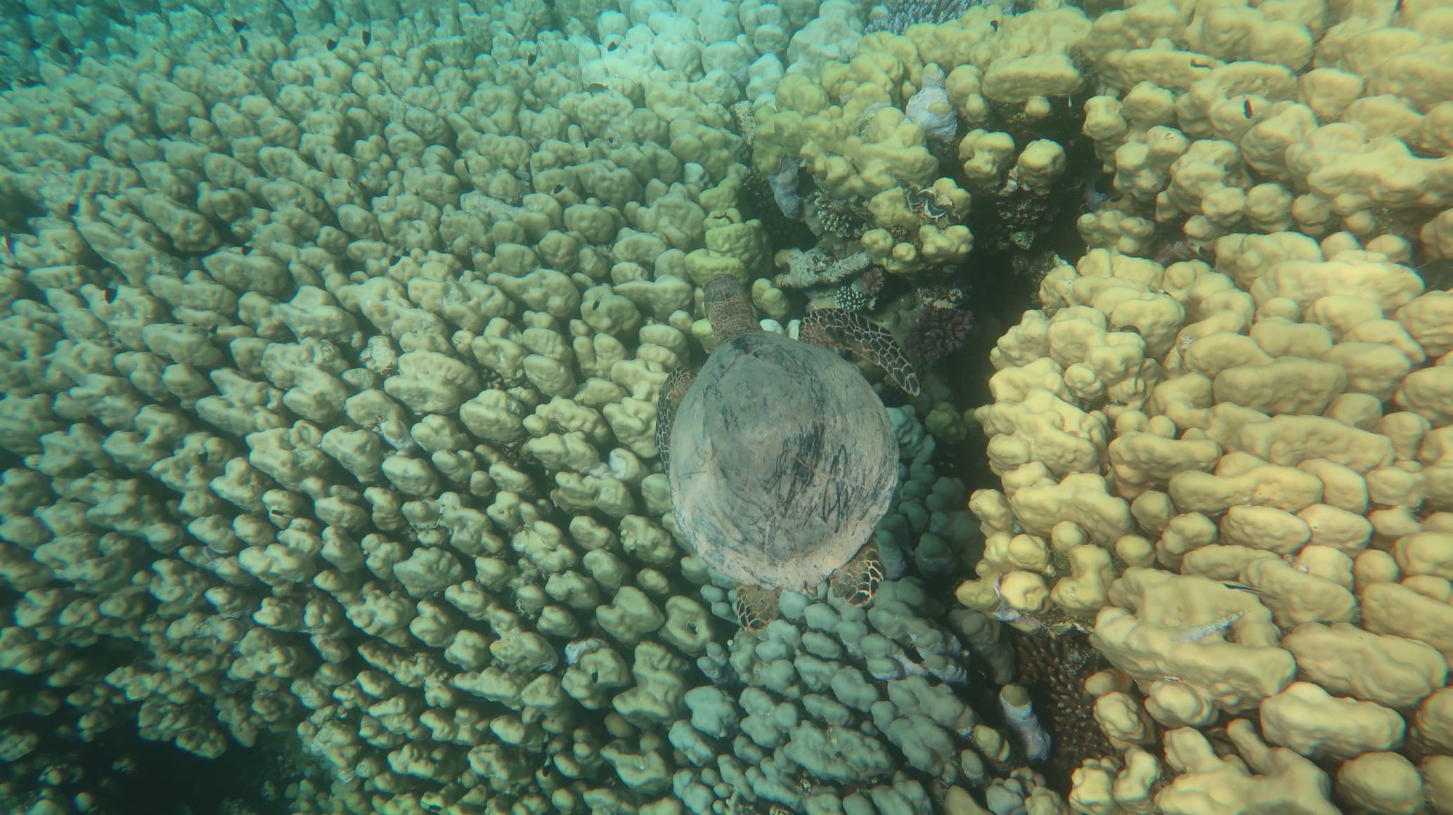 In the deeper areas (↕3-10ft/1-3m), bluecheek butterflyfish, bluespine unicornfish, Sohal surgeonfish and shoals of blackspot snappers are easily spotted. From time to time, a green sea turtle or hawksbill sea turtle also comes to the reef.