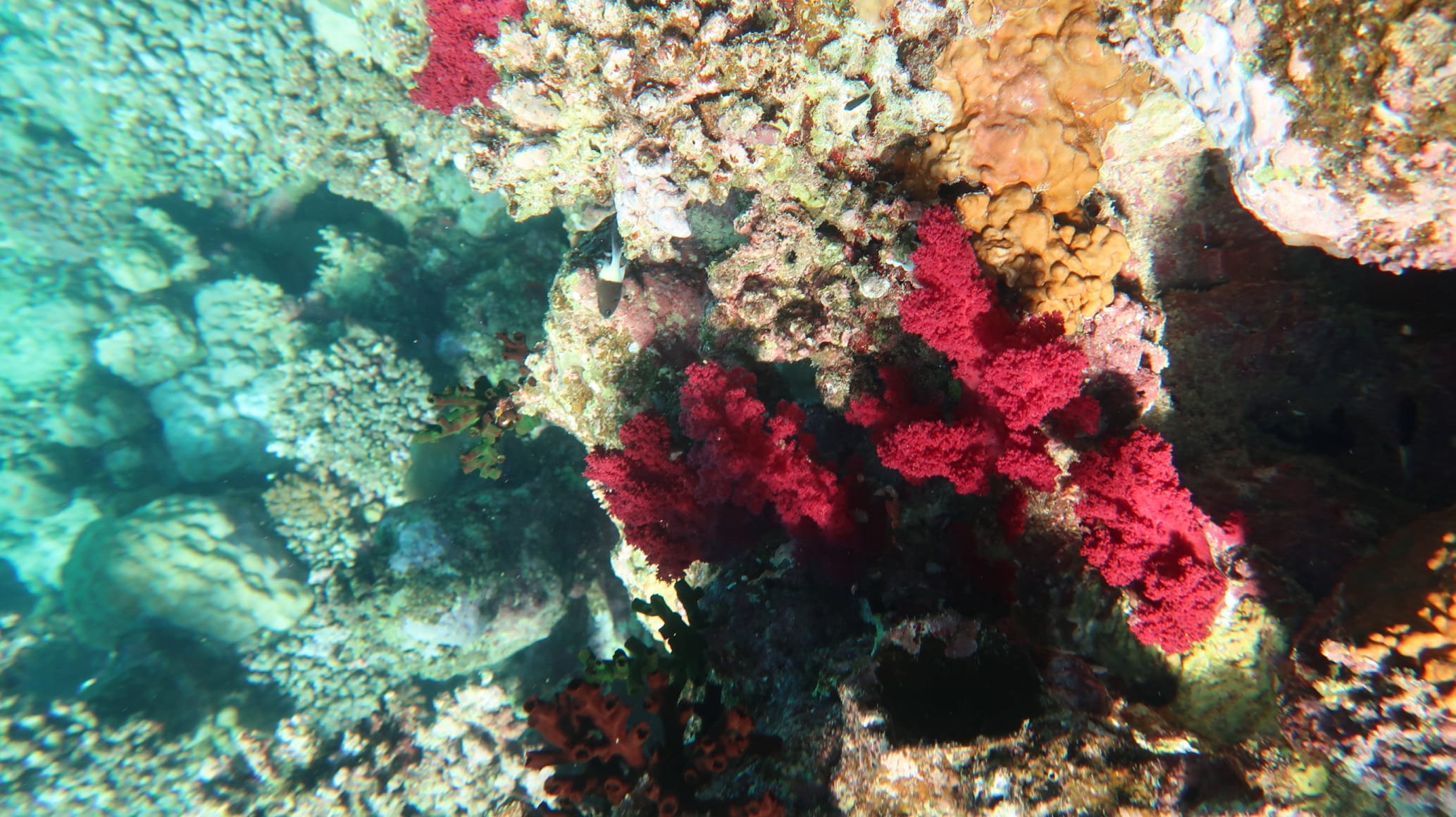 The outer coral reef is outstanding. The outer wall grows and branches in beautiful coral gardens mostly of the Porites solida family, hundred of years old, healthy from bottom to the top, reaching 23ft/7 meters in height.