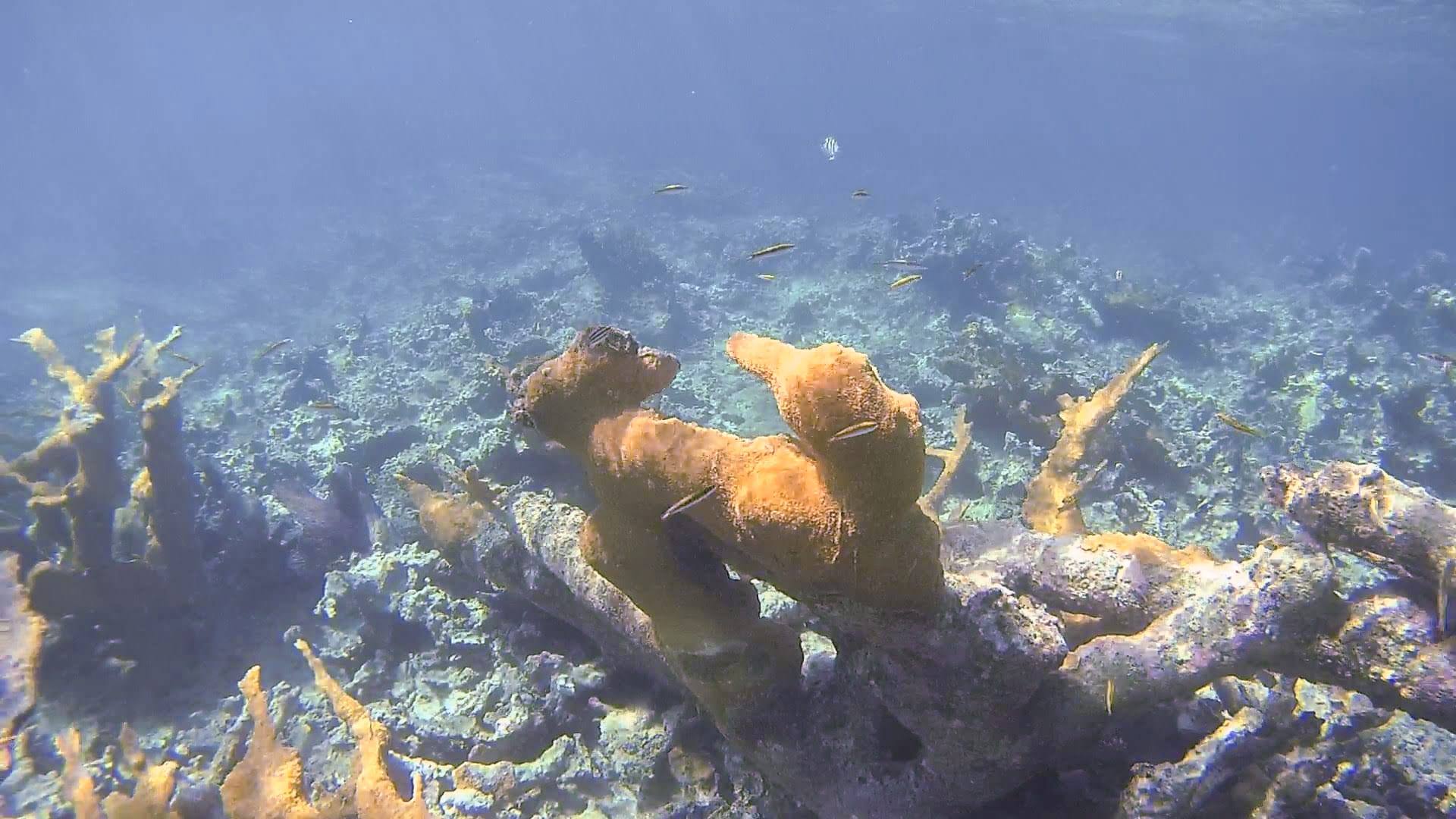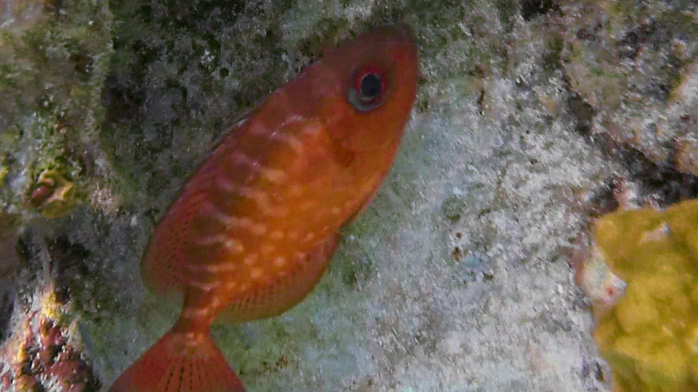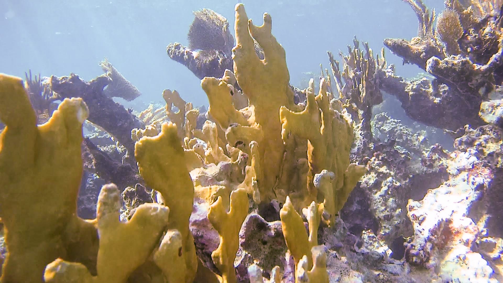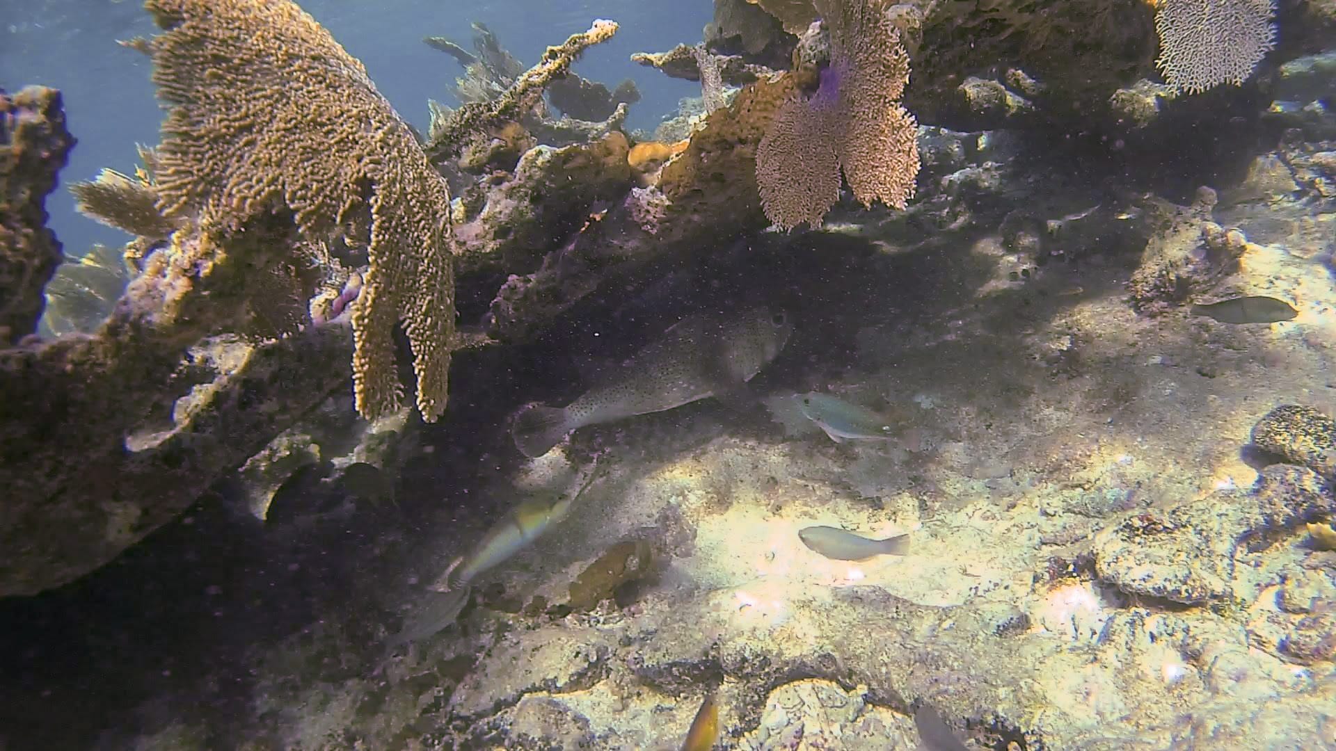 The reef is made of hard coral, especially elkhorn coral and fire coral, but you’ll also find gorgonian and sea fans in some areas. The reef is quite healthy, but the coral is broken corals in some places. Beware of the many sea urchins living between the rocks.