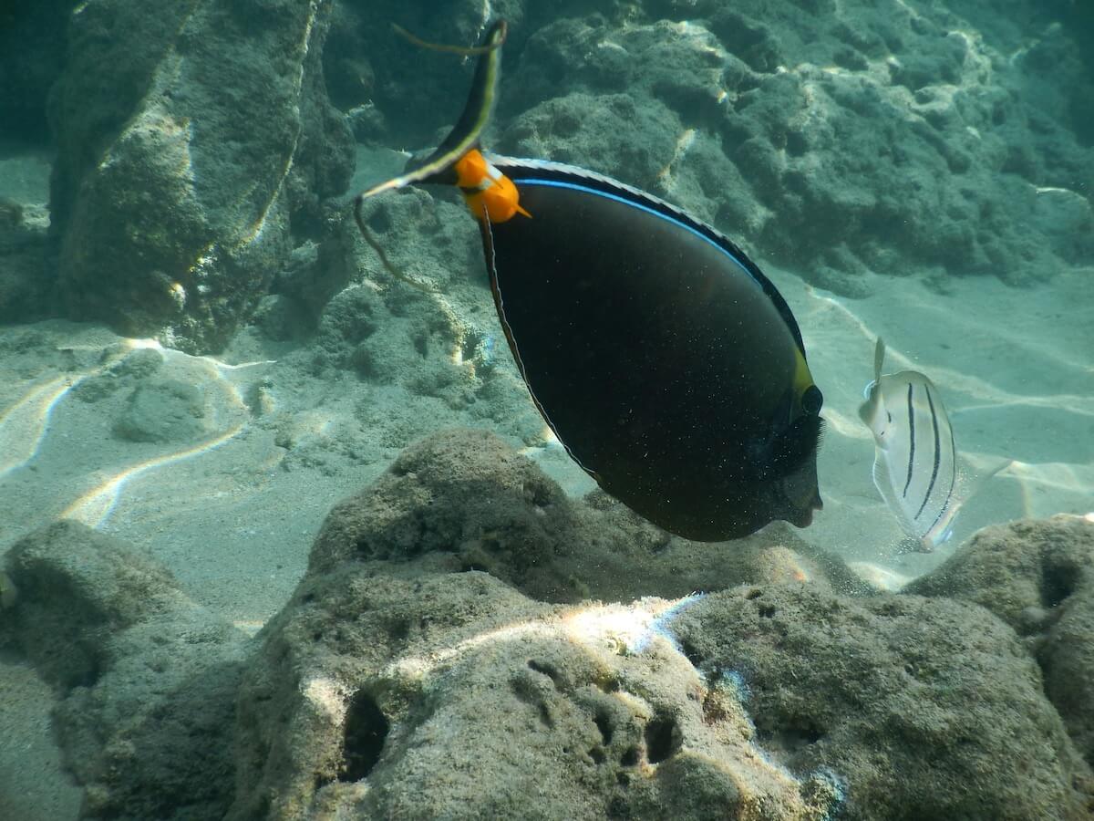 Underwater, you are sure to spot parrotfish, surgeonfish and triggerfish, and a very large number of equally colorful fish, some of which can only be found in Hawaii. The seabeds are rocky and have little coral, especially on the part inside the lagoon.