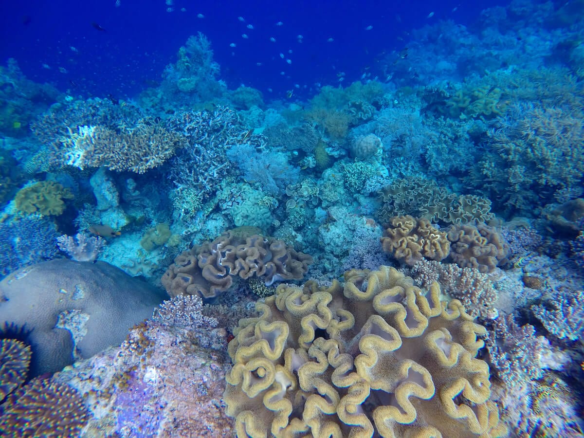 The recommended snorkeling location is the coral reef which begins near the “old village”, one of the two villages of Pulau Hatta, found on the northern side of the island. The reef then stretches along much of its western coast.