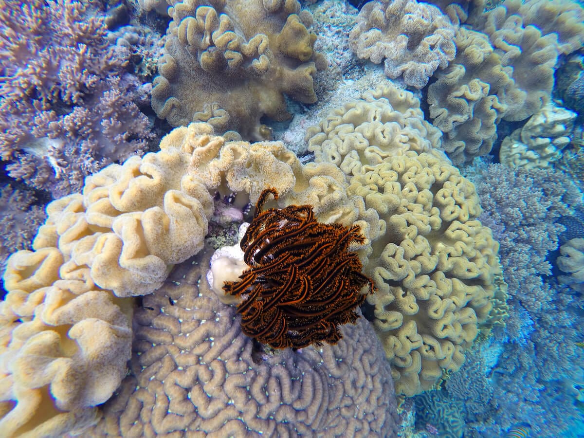 Hatta Island is famous for its vibrant reef drop-off, very steep. It is full of dozens of species of healthy hard and soft corals, punctuated by sea lilies (or crinoids) and gorgonians swinging in the current.