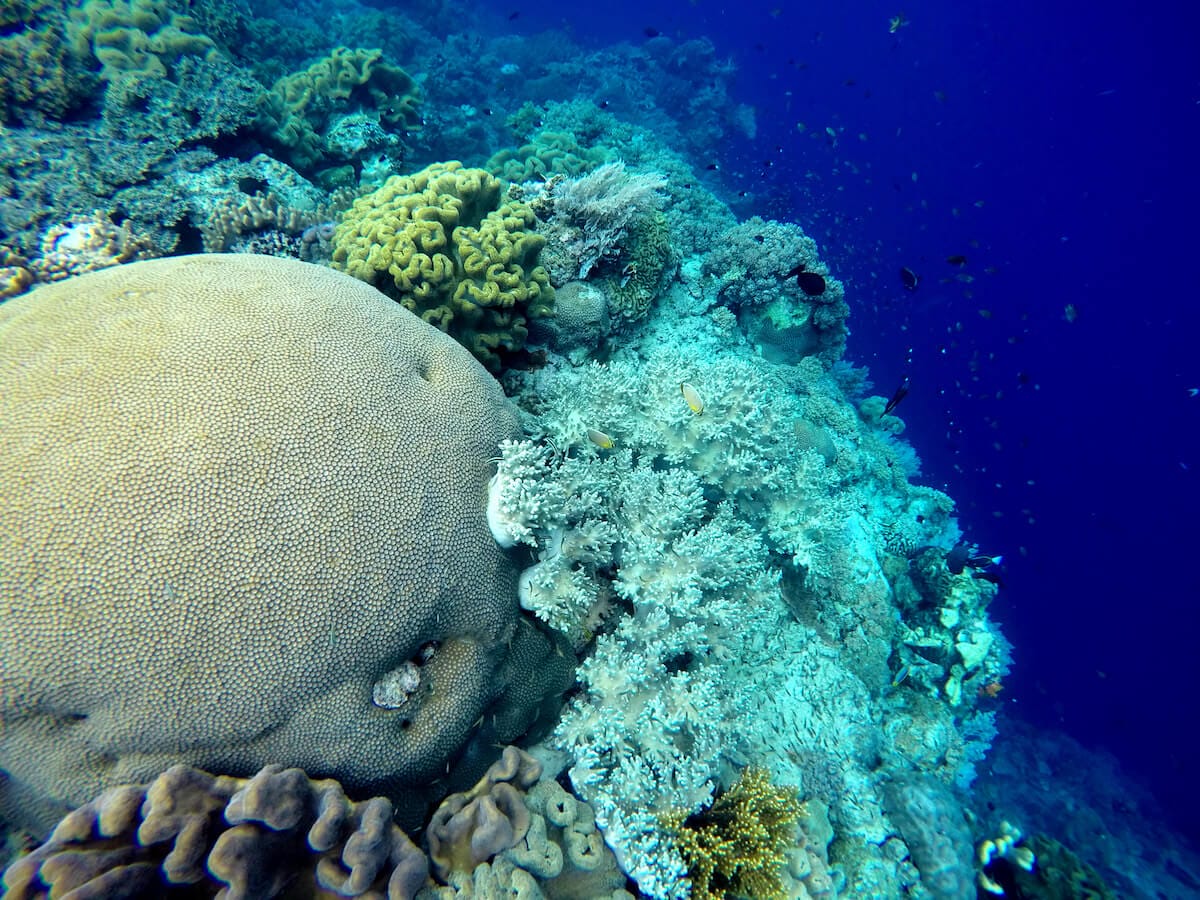 The drop-off extends for several hundred meters, but do not stray too far from the entrance point, especially if there is a current.