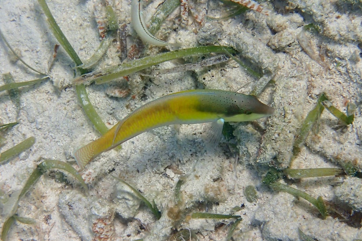 Next to the pass, the sea is shallower and the coral is denser. In places, the seabed is covered with healthy elkhorn coral, almost touching the surface of the water. Known as “reef builders”, they are vital to reef ecosystems, so be very careful to not touch them with your fins.