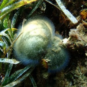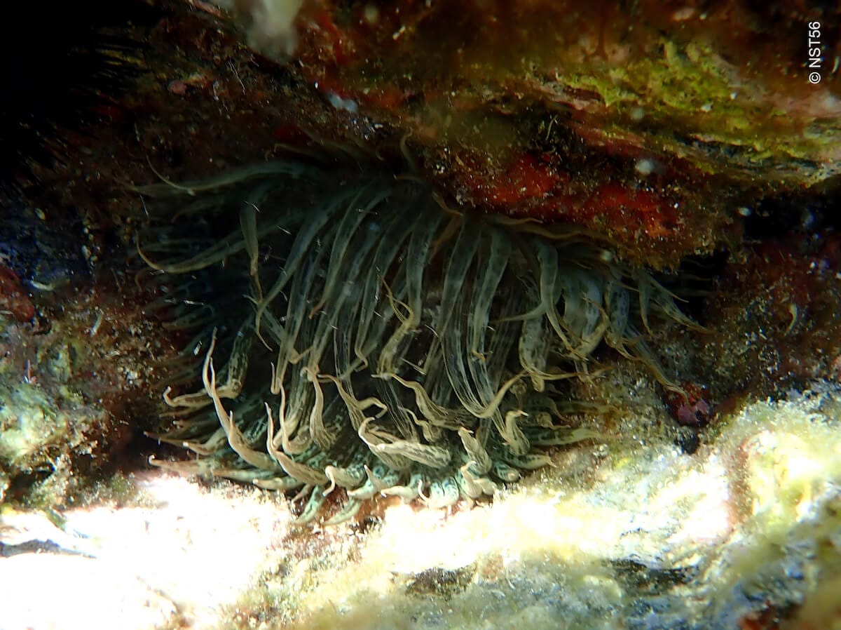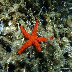 Swimming from the peninsula towards the island, you will quickly come over gorgeous Posidonia meadows. This very shallow area (↕3-6ft/1-2m) is perfect for spotting red starfish and noble pen shells which particularly like this type of environment.