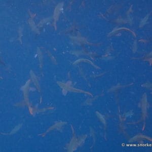 Although Kicker Rock is famous for its schools of hammerhead, whitetip and blacktip sharks, spotting them from the surface is quite difficult due to a limited underwater visibility. The luckiest snorkelers may spot schools of sharks in the deep blue.