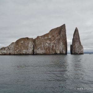 Kicker Rock (León Dormido – « the sleeping lion », in English) is a jagged rock that towers above San Cristóbal Island’s northern coast. It is one of the most iconic sceneries in the Galápagos archipelago. This mythical diving site, well-known for its schools of hammerhead sharks, can also be snorkeled. Along the cliffs, you might encounter green turtles, schools of angelfish, and several species of sharks.