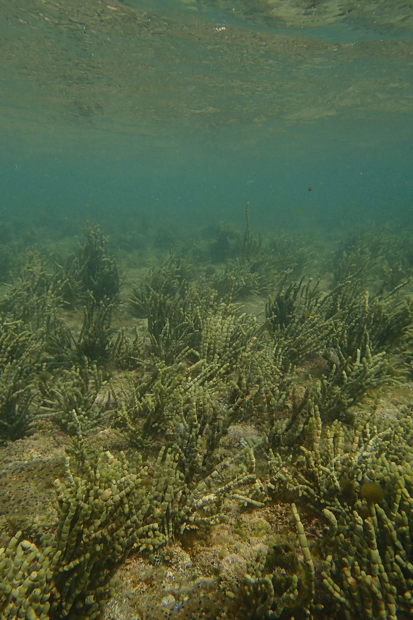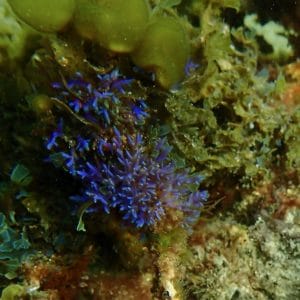 The seafloor alternates rocks, sandy areas and a wide diversity of seaweed (↕2-10ft/0.5-3m). In Kurnell, in particular, you will find beautiful stretches of Neptune’s necklace (Hormosira banksii), paddle weed (Halophila ovalis), patches of kelp, as well as beautiful, almost fluorescent, blue branching seaweed (Fauchea laciniata).