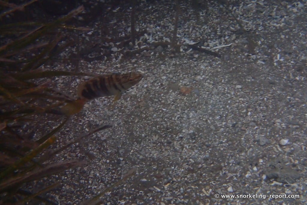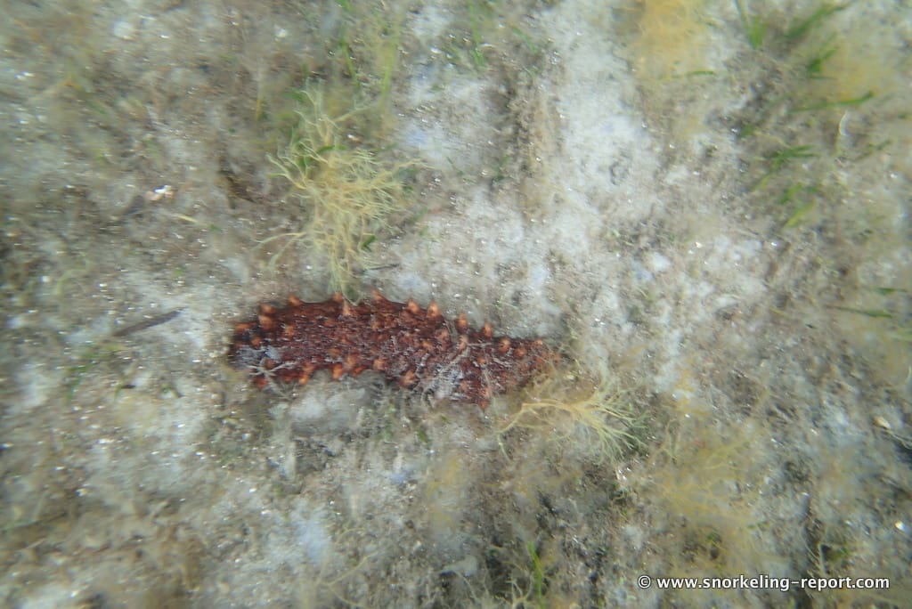 The recommended snorkeling area encompasses the barrier reef, but also the surroundings of the odd rock emerging from the water on the reef’s west side. From the beach, water depth steadily increases until it reaches 6-9ft/2-3 meters when arriving at the reef. Foothold remains possible most of the time, which makes this place a perfect one for beginners.