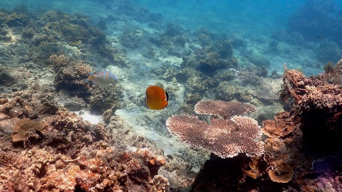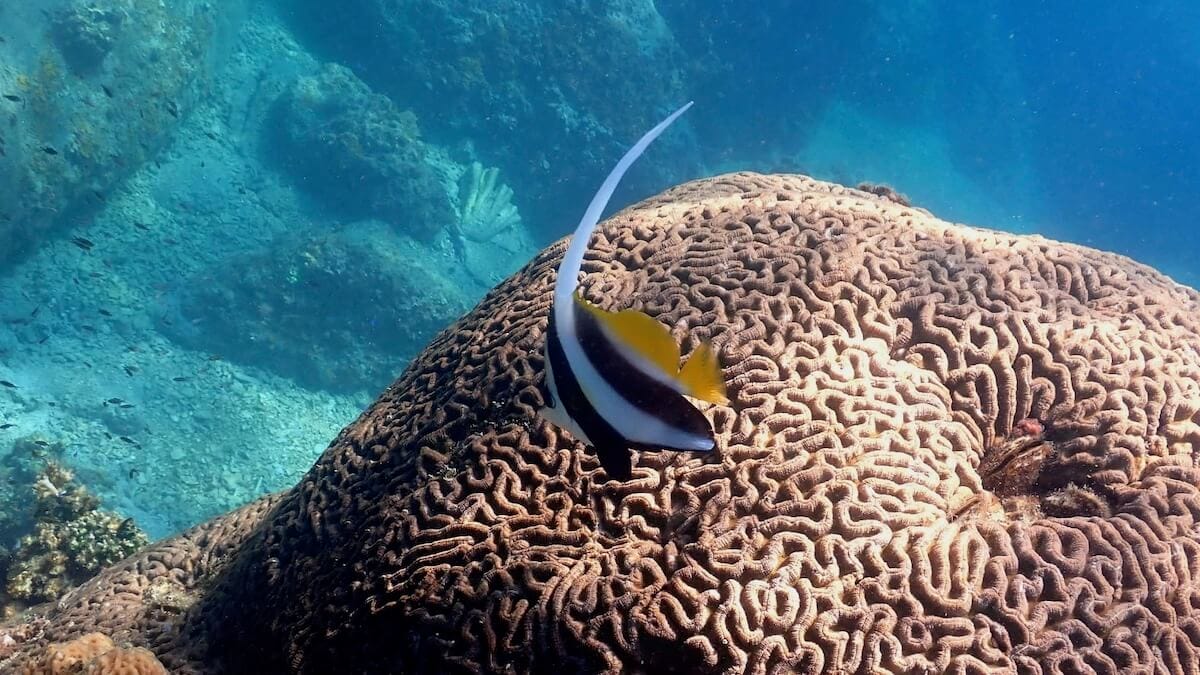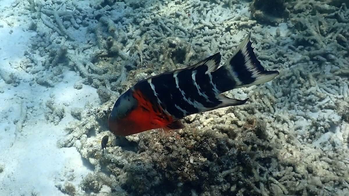 The sea life of Mango Bay includes lots of parrotfish, spinefoot and wrasses. The Hong Kong butterflyfish, the eight-banded butterflyfish and the pennant coralfish also inhabit the reef. Anemonefish, however, are quite rare here: to get better chances to spot them, head to Tanote Bay or Shark Bay, in the south of the island.