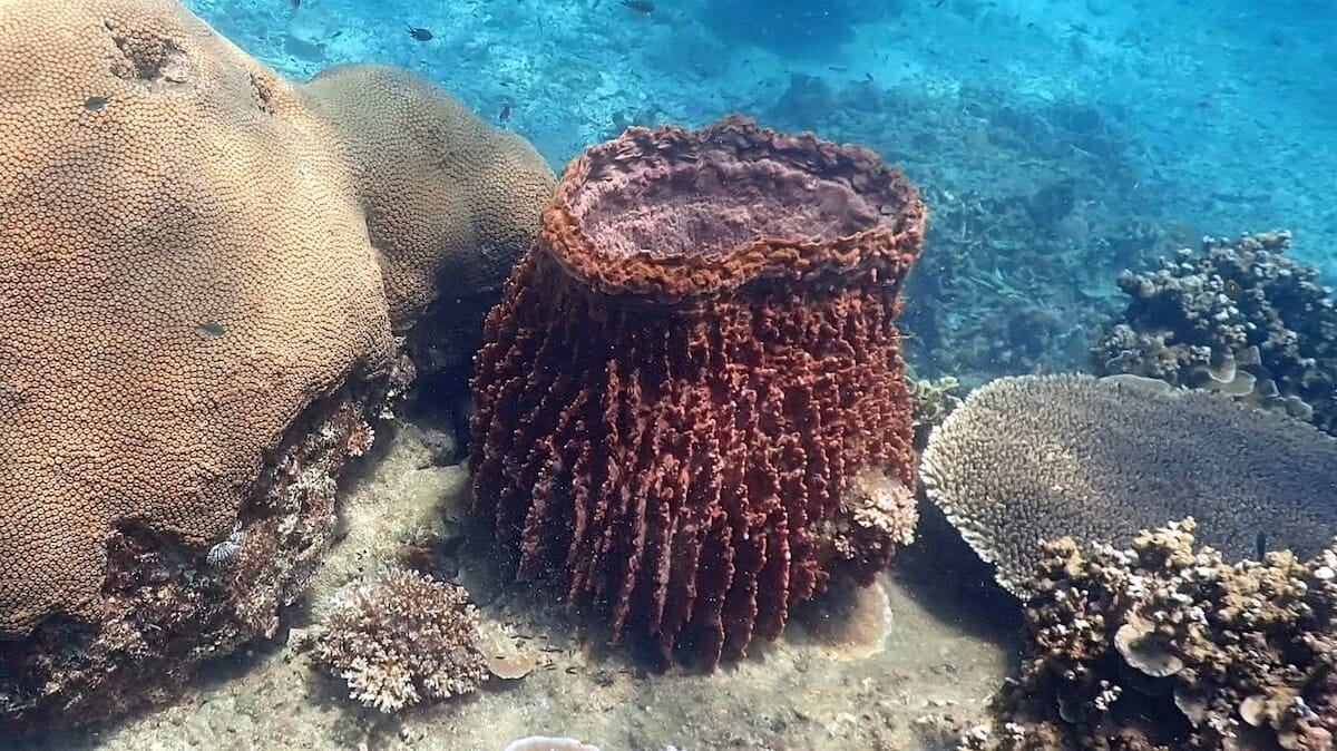 You’ll also see in some places beautiful barrel sponges, blue sponges, and very colorful giant clams.