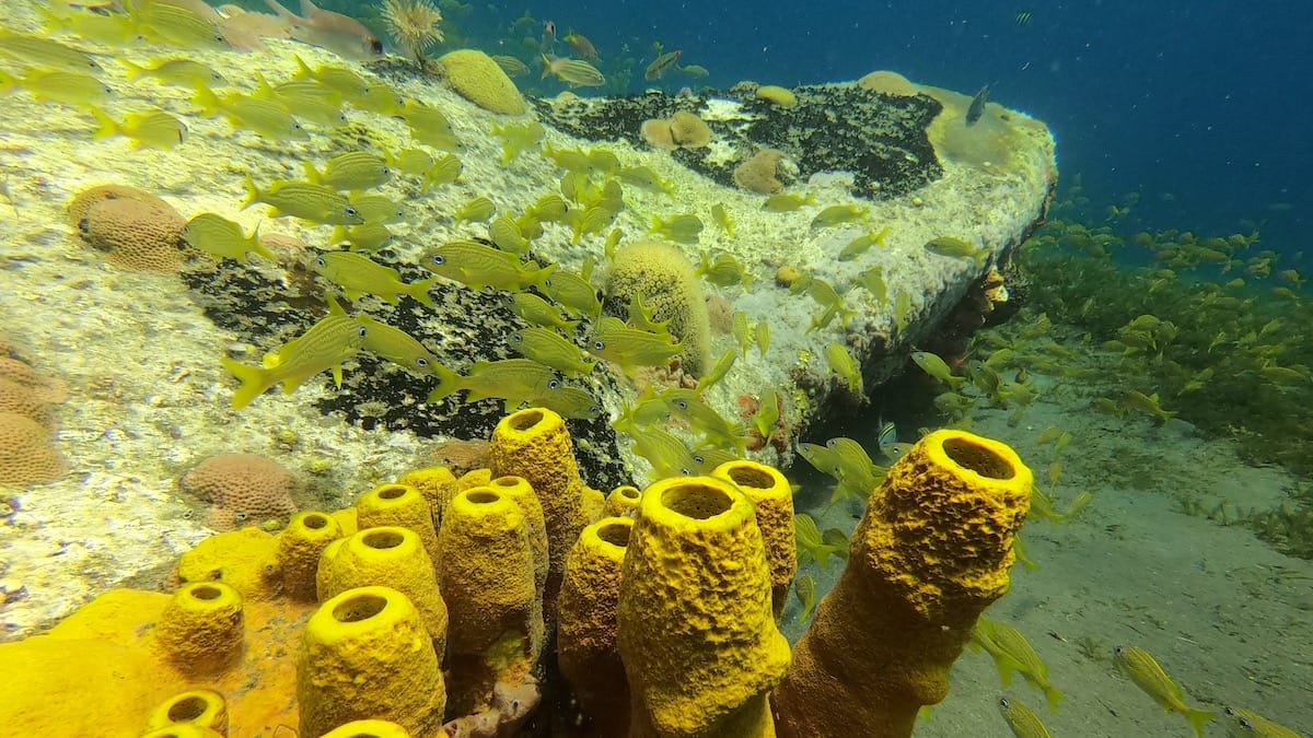 Immersed since 2004, the sculpture has begun to be covered with small sponges, corals and Sabella. As an artificial reef, the sculpture attracts many fish, such as sergeant majors, dusky squirrelfish and French grunts. On the surrounding seagrass beds, sea turtle or stingrays are occasionally spotted.