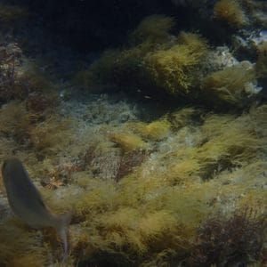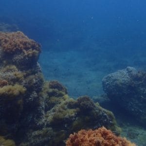 Schools of damselfish are found near the rocks, while painted combers and different types of wrasses hide in the seaweed. Seabream crosses the reef from time to time.