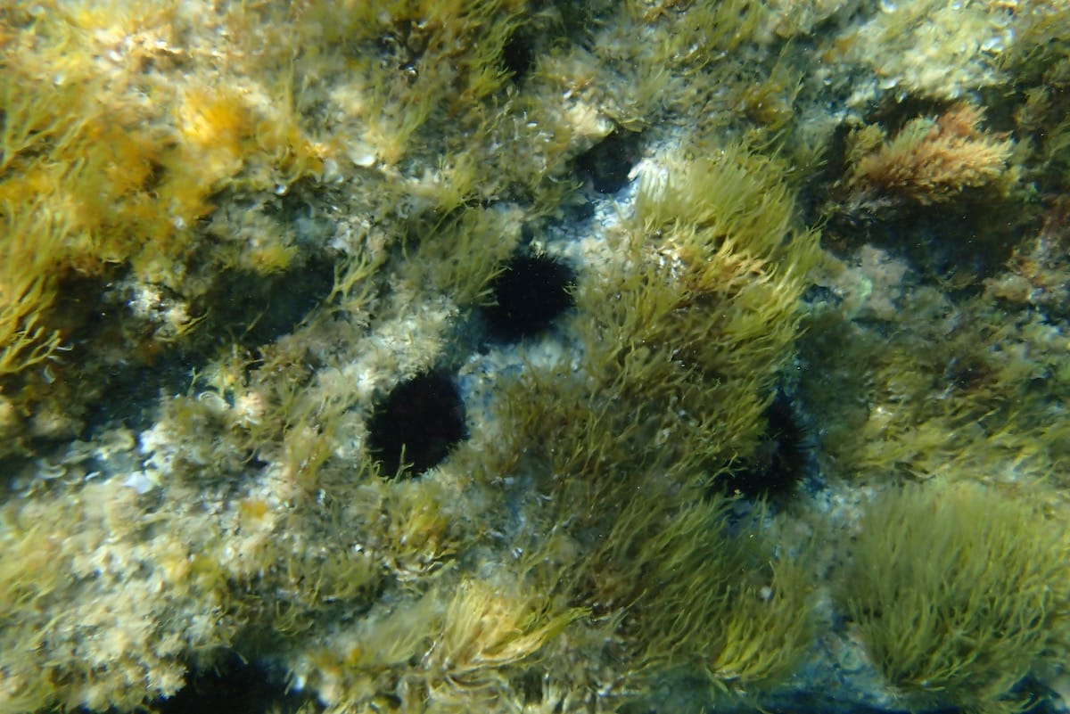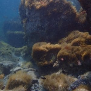 The rocks are covered by a wide variety of seaweed, including Padina, Dictyota, and red algae. This spot is not populous with fish, but the species that snorkelers can come across are quite varied.