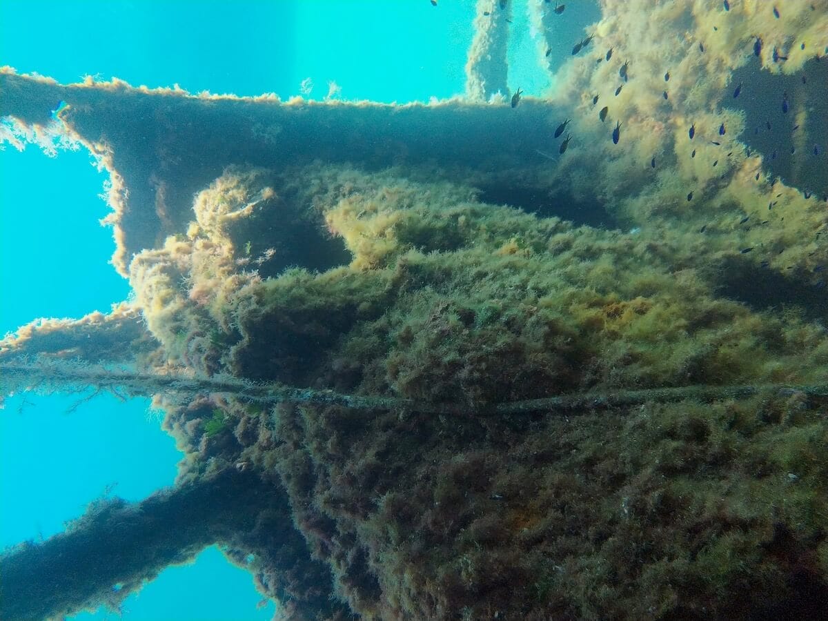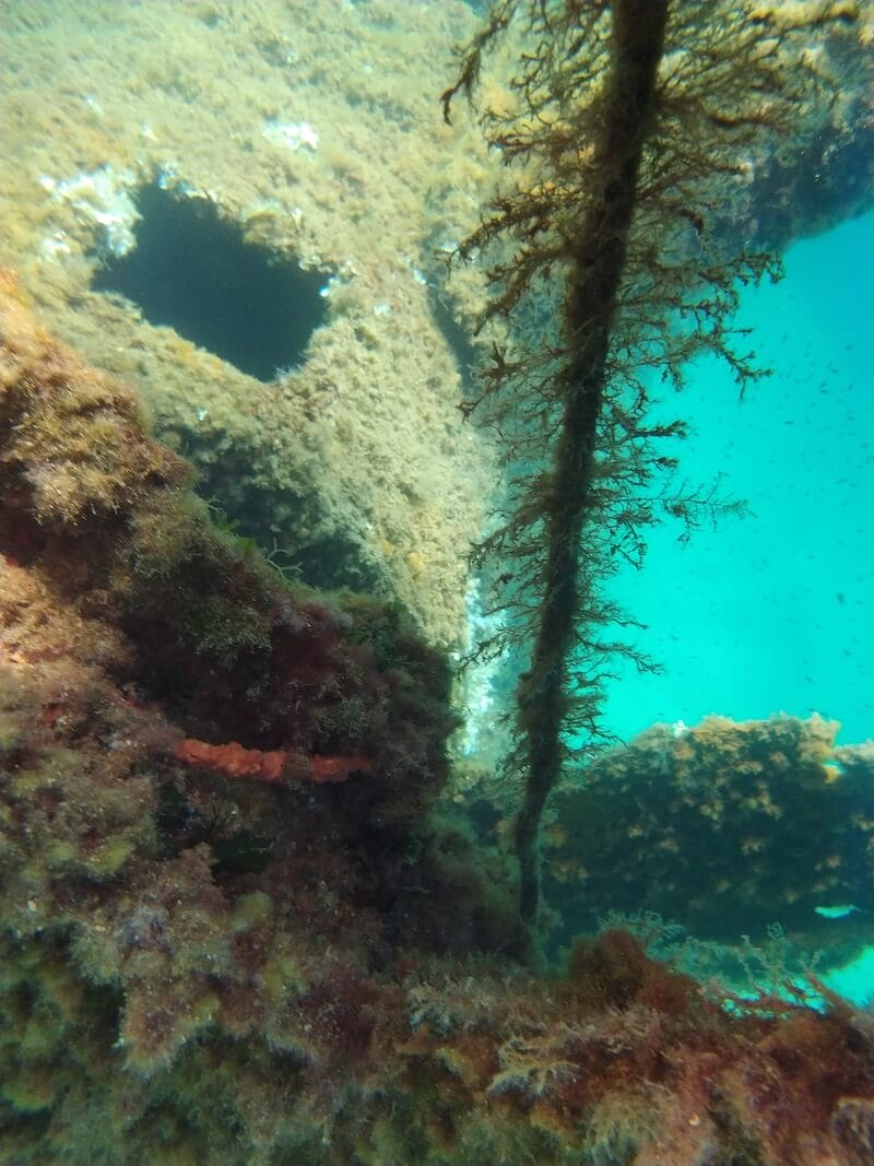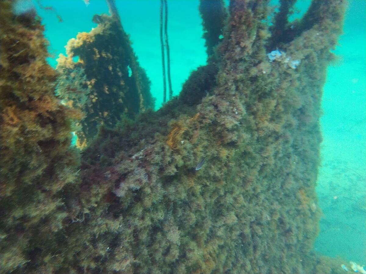 If you skindive, you can get closer to the structure and observe the underwater life that calls the wreck home. The Mario has been covered over time by different types of algae and by sponges from Dictyonella genus, forming an oasis of life in the middle of the sandy beds.